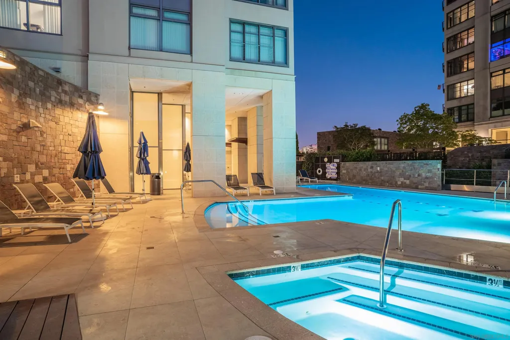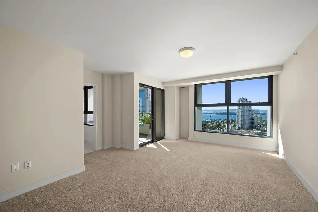 Don't miss this one-of-a-kind, northwest corner floor plan in the south tower of Renaissance! Views are yours in every room; from sparkling city lights to the blue waters of the bay spanning beyond Point Loma! Beautifully upgraded, featuring a dual primary layout, fireplace in the living area, wood floors, and a generous amount of storage provided by the built-ins in nearly every room. The kitchen boasts granite counters, a large center island, high-end appliances by Sub-Zero and GE Monogram, plus an office space and breakfast area. The large primary suite offers its own private patio, a huge walk-in closet with a customizable system by Elfa and a fold down ironing board to boot. The en-suite bath features beautiful marble surrounds, a jetted spa tub, dual vanity, and separate walk-in shower. Guests will love the second bedroom which feels like its own private wing with en-suite bath and a spacious walk-in closet. This residence also includes a storage unit (level 1) and two separate parking spaces (level 2). The refreshed Renaissance common areas are sure to impress highlighting a new state of the art main lobby near completion! With staffed lobbies, 24/7 security, pool and spa, barbecues, seating areas, an outdoor fireplace and firepit, a well-equipped fitness center, and meeting room, the development has it all. Located in the highly desirable Marina District, street level at the Renaissance features, a myriad of retailers just an elevator ride away, including Wells Fargo, tanning salon, dry cleaners, Postal Annex, Vitality Tap for all your fresh juices & vitamins, and a soon to be coffee/sandwich shop. Enjoy easy walking access to train and trolley lines, excellent restaurants, shopping, and a Ralphs Signature Market across the street.