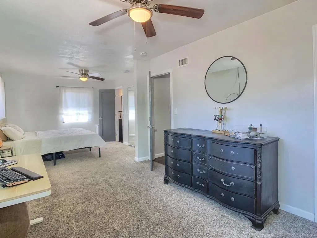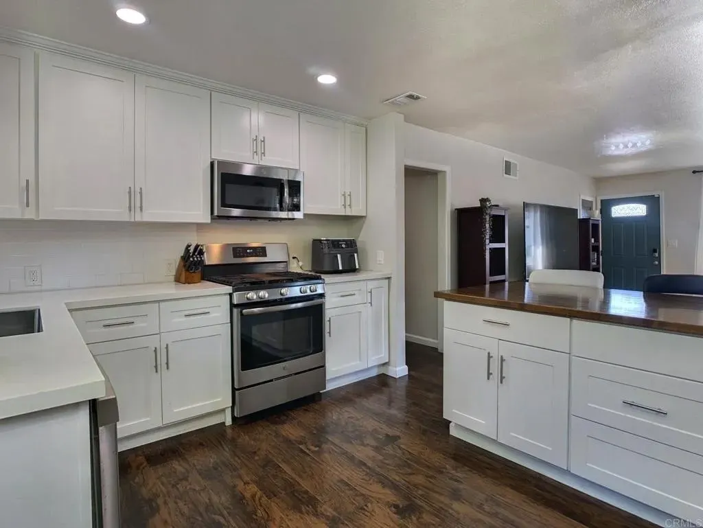 Just sit back, relax and unwind - this beautiful home is fully loaded! Single-level, 3 bedrooms and 2 baths. PAID Solar, all new ABS piping, newer electrical panel, newer A/C & Heat with a complete Home water softener and reverse osmosis system. Entertain your family and friends in the exquisite open concept kitchen with white cabinetry, white quartz countertops, recessed lighting, stainless-steel appliances and large butcher block Island with seating and storage! Easy to maintain Laminate flooring, and keep cool with newer ceiling fans in every bedroom. Get ready to enjoy your Spacious primary bedroom with 2 separate closets and an all new primary bath with expansive walk-in shower & dual sinks. Situated on a Large corner lot with peaceful park views and cool breezes. Fully fenced backyard with two Car Garage and drive thru gate for trailer, etc. Low maintenance hardscape landscaping in both front and backyard. Additional upgrades include dual pane windows throughout, fully updated bathrooms with quartz countertops and ceramic tiling in primary ensuite. Conveniently located near schools, parks, shopping, and freeway.