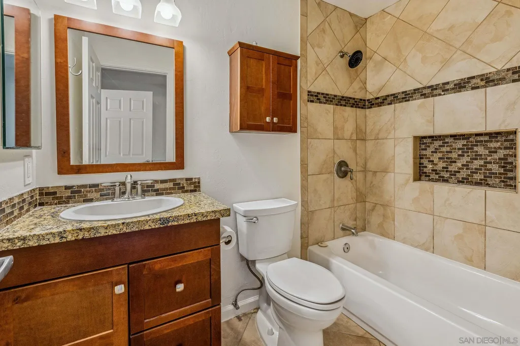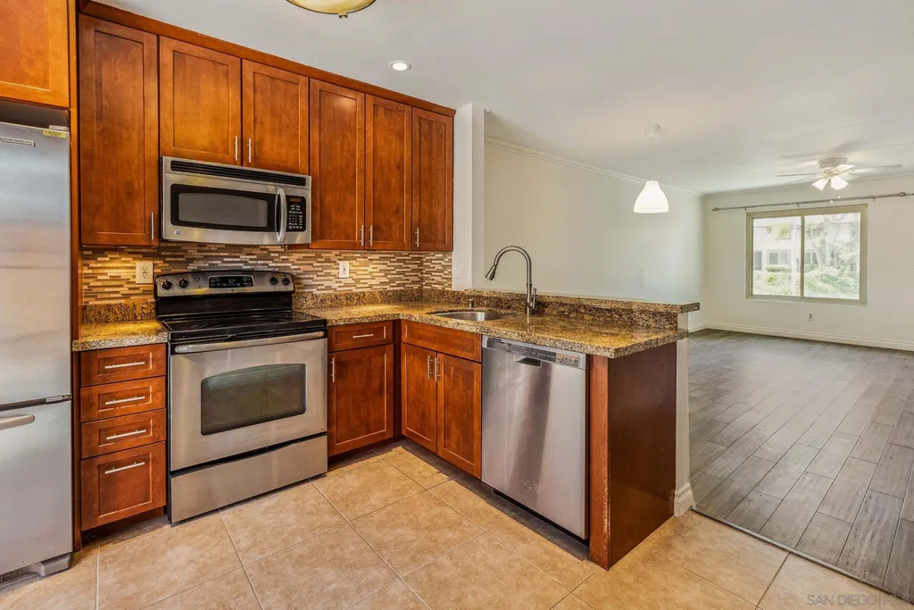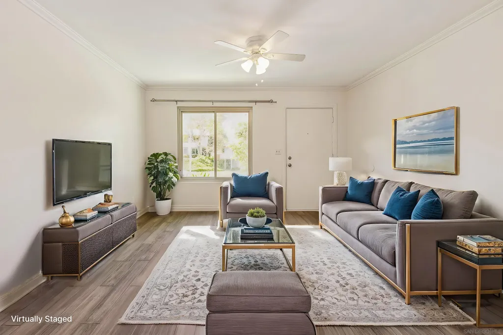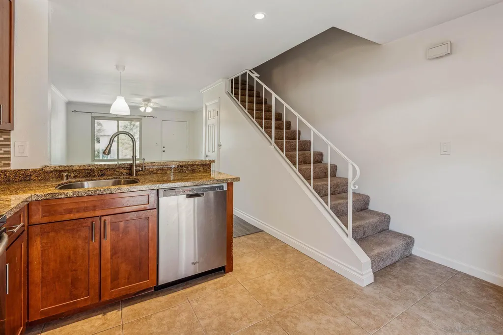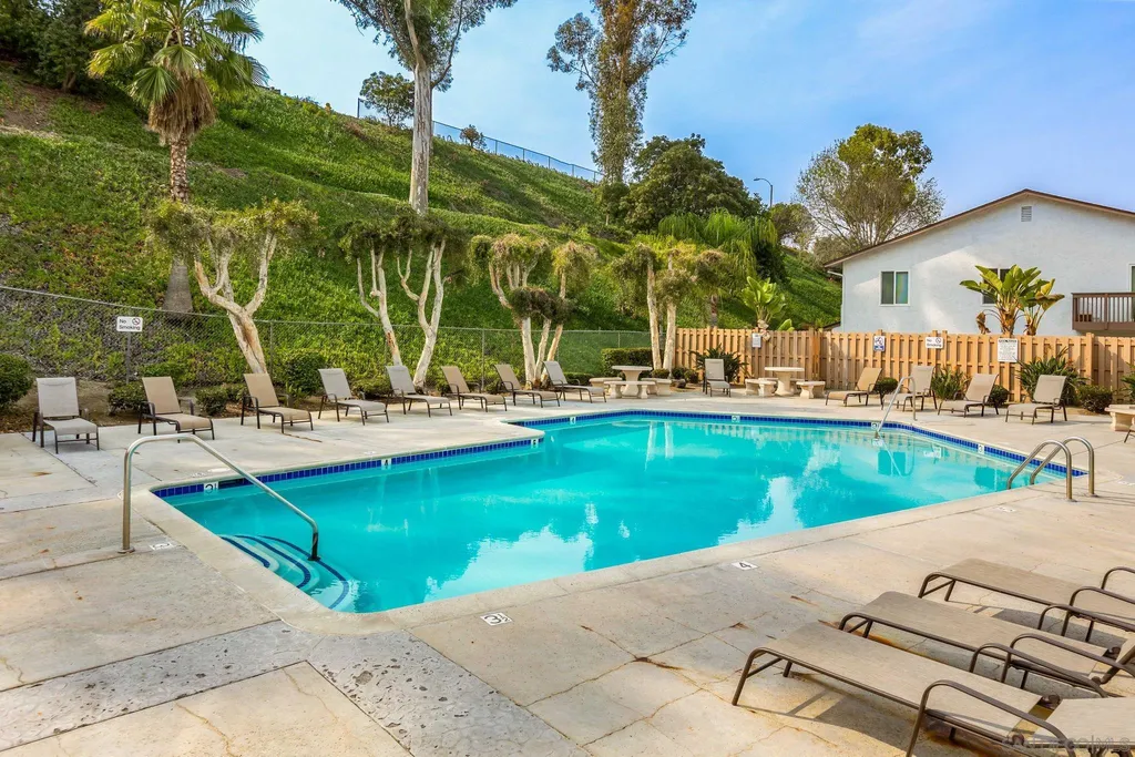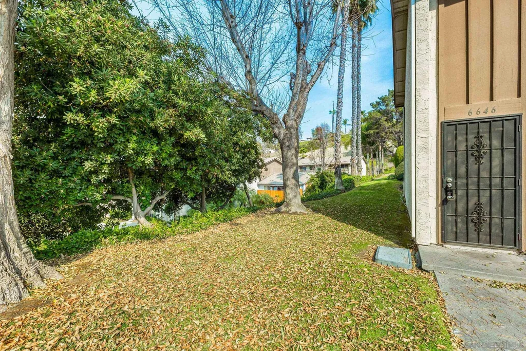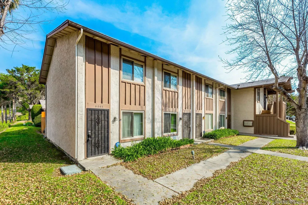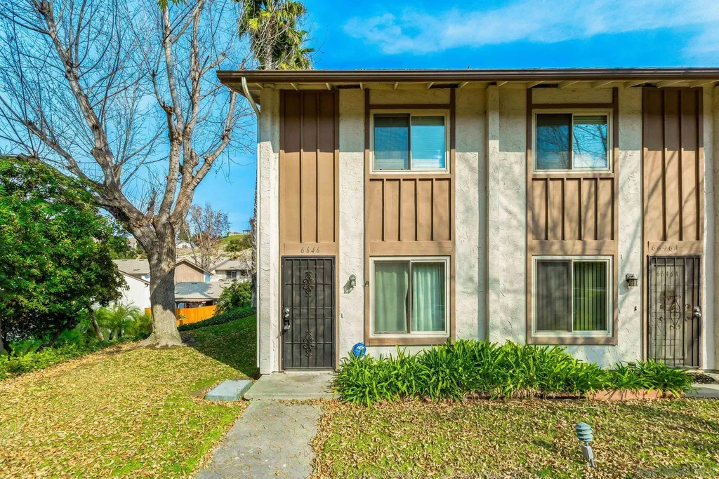 Are you looking for the perfect combo of location, & quiet? Welcome to 6646 Bell Bluff Ave. This charming end unit townhome offers the ultimate convenience of San Diego. This freshly painted 2 bed 1 bath condo features a spacious private patio, open layout, and convenient amenities. Upgrades include a newer kitchen, bathroom, dual-pane windows/sliders, and water heater. Parking and storage is abundant with 1 carport space, 1 tandem spot. The carport has 5 private storage lockers and community laundry (for 5 units). Plenty of street parking for guests. Individually metered for water, low HOA dues. Walking distance to Mission Trails Regional Park and Visitor Center, close to Cowles Mountain, Lake Murray, Downtown San Diego, metro areas, VA Approved!!!