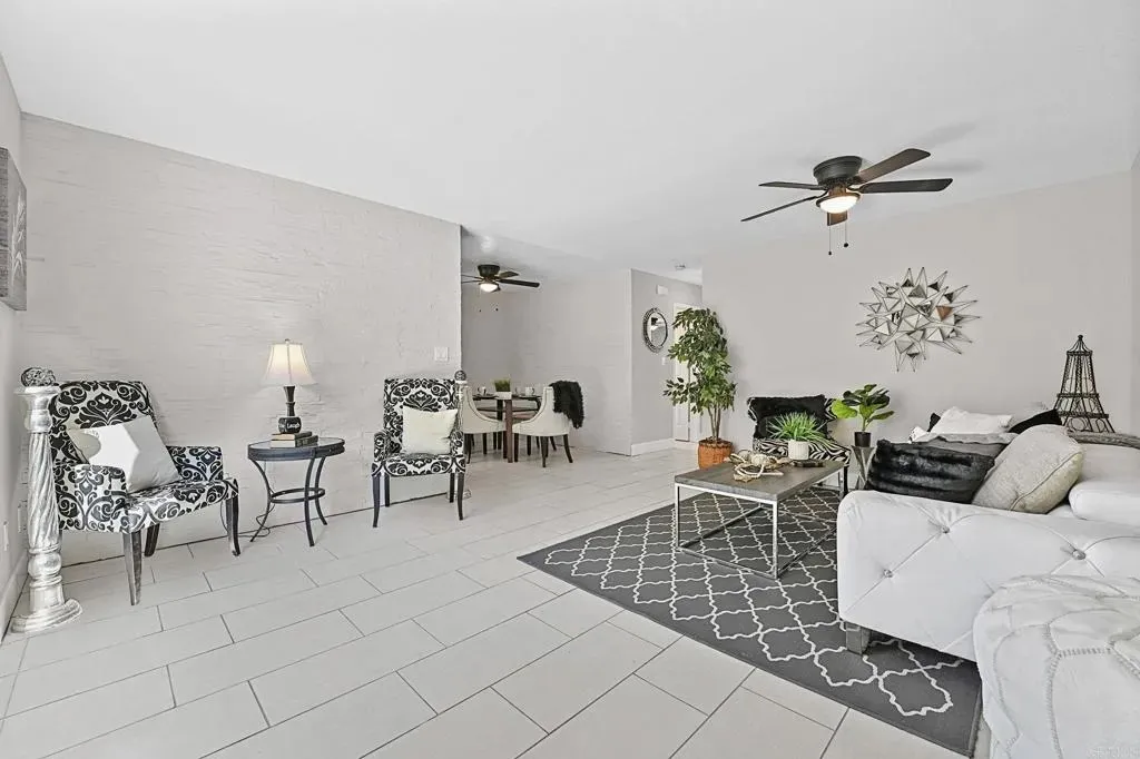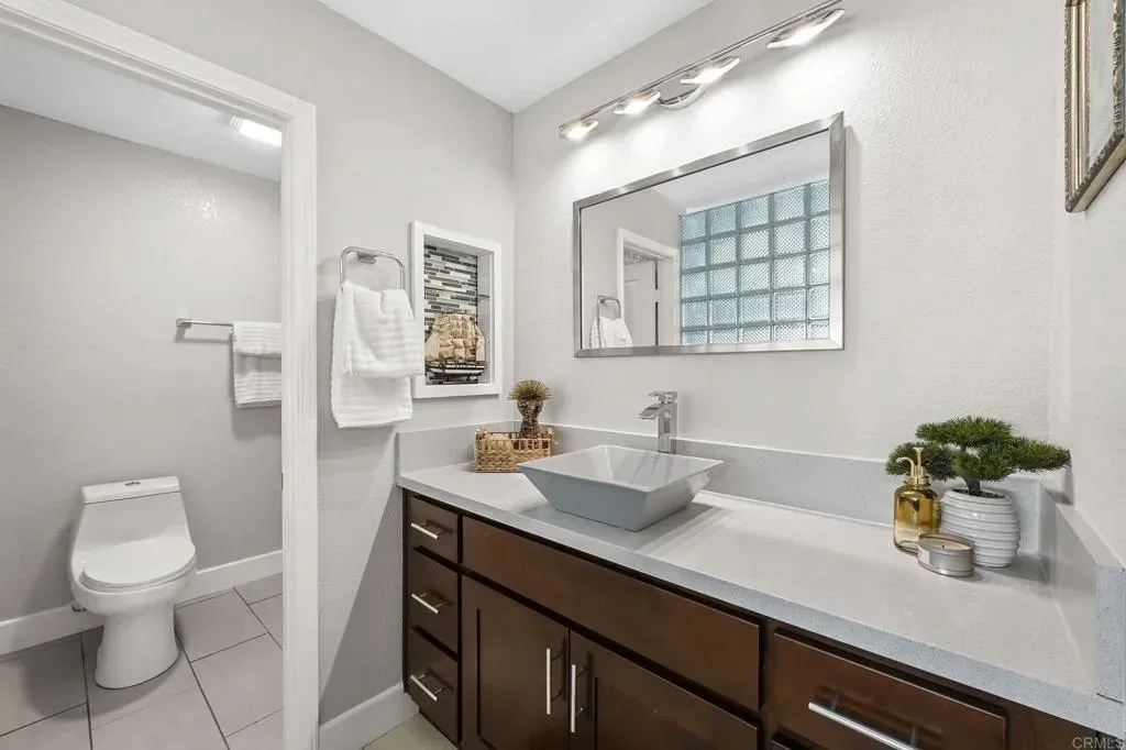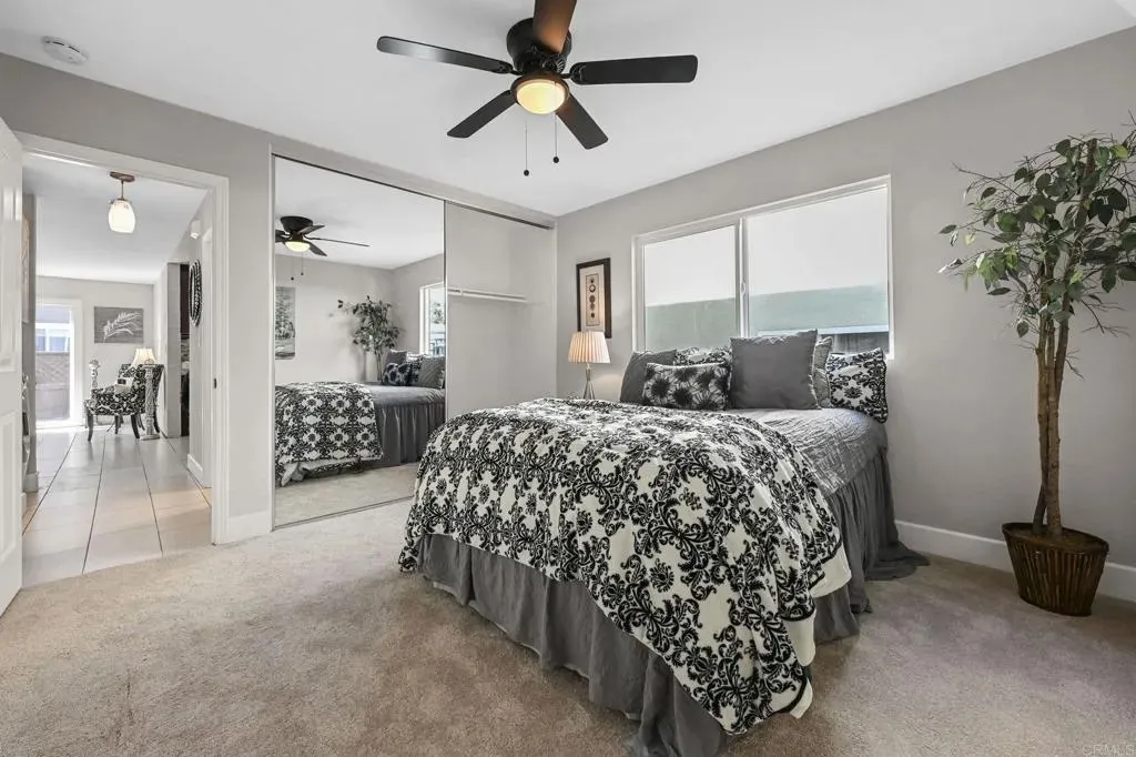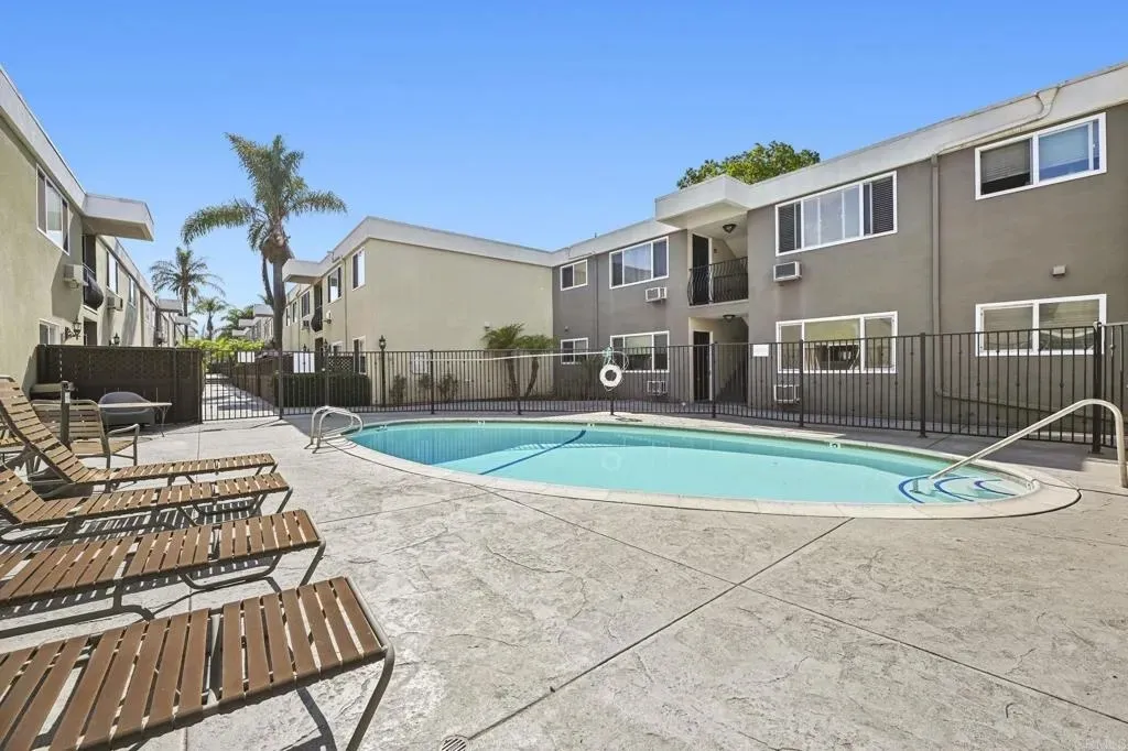 Tucked within the highly desirable Heritage Park West community in Clairemont, this entry-level condo offers the perfect blend of comfort and convenience. Step inside to a spacious, open-concept living area filled with natural light, tiled floors, and ceiling fans. A new slider opens to an oversized private patioideal for morning coffee, evening gatherings, or simply enjoying San Diegos sunshine. The living space flows seamlessly into the dining area and connects to the kitchen. Here, warm cabinetry is paired with sleek Quartz countertops, a mosaic glass tile backsplash, and a window over the double sink for a bright, cheerful touch. The primary bedroom is a true retreat, featuring an oversized wall-to-wall closet and a large window. Its ensuite bathroom has been beautifully updated with Quartz countertops, a tiled niche, and a walk-in shower finished with custom glass subway tile. A spacious guest bedroom and second updated bathroomwith matching finishes and a shower/tub combooffer comfort for family or visitors. Additional highlights include ceiling fans in both bedrooms, a convenient laundry closet, and two assigned parking spaces. The gated community provides access to a sparkling pool and laundry facilities. All of this in a central Clairemont locationjust minutes from the beach, freeways, shopping, and restaurantsmakes this home a rare find.