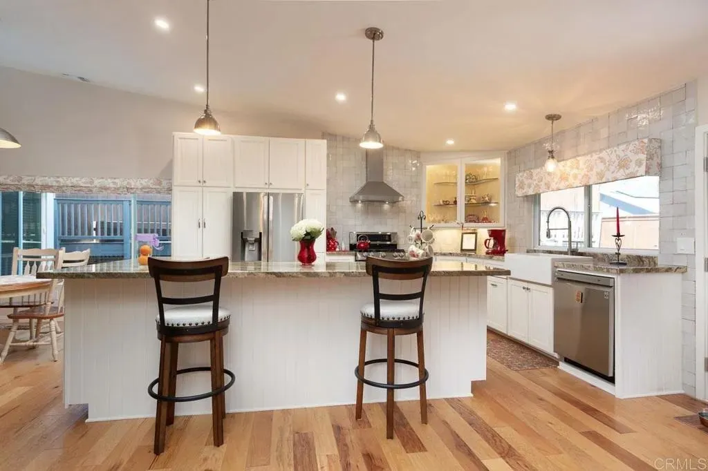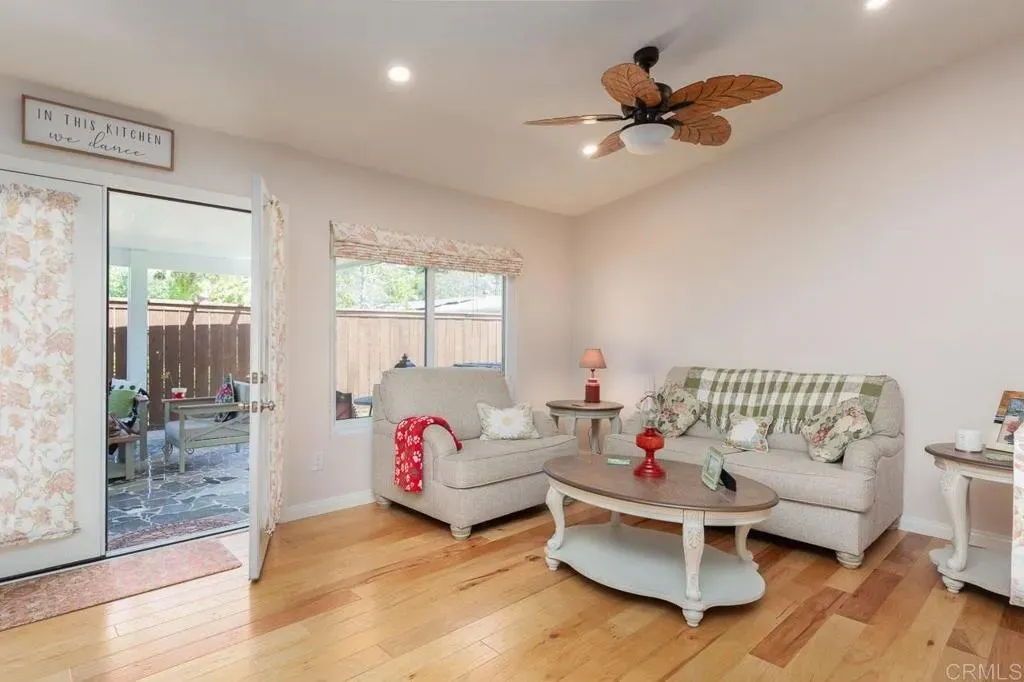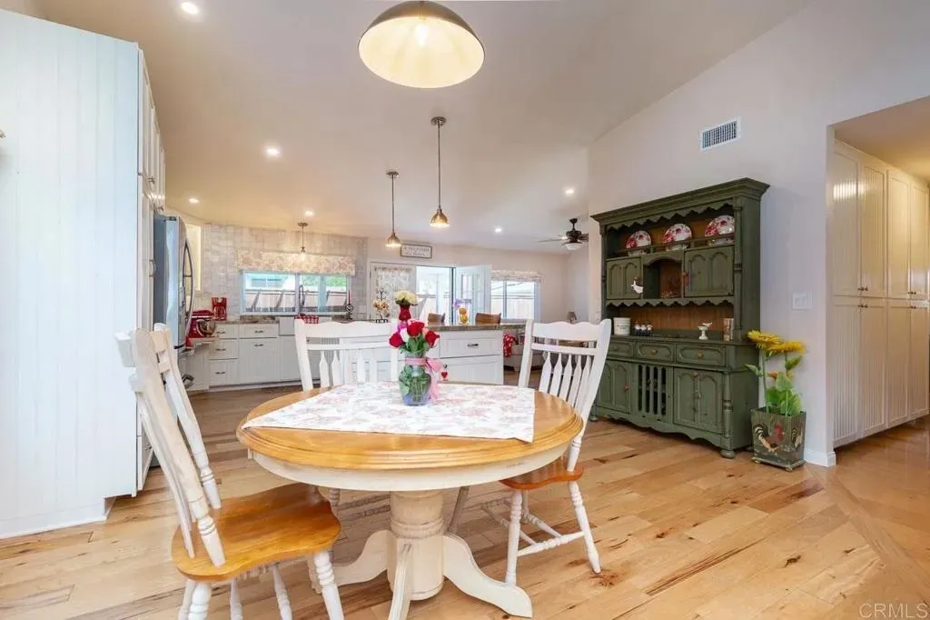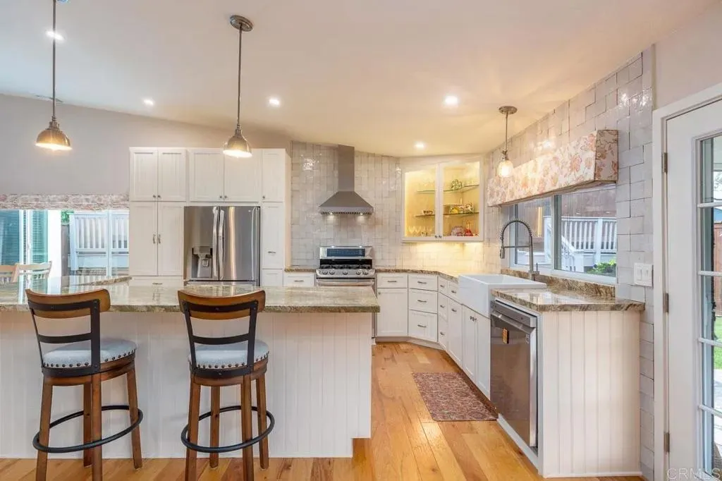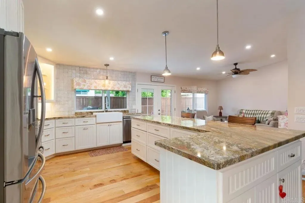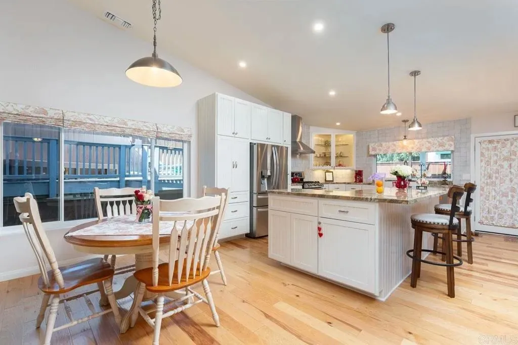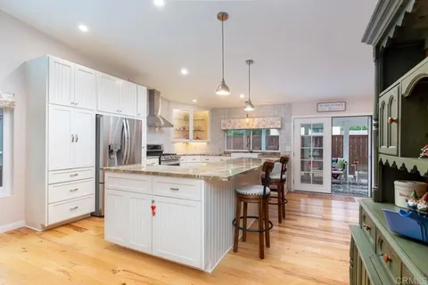 Welcome to the San Carlos Home You've Been Waiting For! This beautifully remodeled, single-level four-bedroom, two-bath home is a rare findlovingly maintained and thoughtfully upgraded. Every detail has been carefully considered to create a warm, functional, and inviting living space. Step into a bright, welcoming foyer where vaulted ceilings and rich wood floors set the tone. Large windows fill the home with natural light, and the layout flows effortlessly from room to room. A slight step down to the left reveals a spacious living room featuring an elegant gas fireplace and hearthperfect for cozy evenings. The heart of the home is an open-concept living, dining, and kitchen area designed with entertaining in mind. To the right of the entry, you'll find a versatile fourth bedroom with double doors, currently used as a home office, den, or gym. The fully remodeled kitchen is a chefs dream, complete with custom white birch cabinetry, granite countertops, and an abundance of smart storage solutions. Every cabinet and drawer has been purposefully designed for ultimate convenience. Highlights include a glass-lit corner display cabinet, a large under-mount white farm sink, and sleek LG stainless steel appliancesincluding a smart double-door refrigerator with filtered water, a craft ice maker, and a multi-temp drawer. The five-burner gas stove features dual ovens with convection and standard options, while the smart dishwasher adapts to your needs with soil sensors, delayed start, and energy-efficient settings. Additional kitchen features include recessed lighting, custom fixtures over the sink and bar, and a generous island with bar seatingperfect for cooking, baking, or casual dining. Dont miss the custom cabinet built specifically for a KitchenAid mixer, surrounded by ample baking storage. Adjacent to the kitchen, French doors lead to a cozy family room ideal for movie nights, a kids' computer area, or additional lounging space. Step outside to a covered patio and weatherproof raised deckan entertainers dream for morning coffee, weekend barbecues, or relaxing happy hours. Down the hallway, youll find impressive custom birch cabinetry with pull-out drawers and clever storage for cleaning tools and linens. The primary suite offers a peaceful retreat with abundant natural light and a custom-designed closet featuring hickory sliding doors, dual hanging rods, built-in shelving, and two-tiered shoe storage. The en suite bathroom showcases dual sinks with pull-out drawers, a barn door, and a beautifully tiled walk-in shower. The second bathroom is equally updated with modern tile, a glass enclosure, safety grab bars, and stylish lighting and fixtures. The two additional bedrooms are comfortable and inviting with newer carpet, ceiling fans, and window blinds. Recent Upgrades & Major Perks Include the following. Paid Solar with minimal true-up cost. New Owens Corning Roof with warranty (Dec 2023). New HVAC system, heat pump & insulated ducting (Mar 2024). New garage door & opener (Aug 2022). 88-ft backyard retaining wall for land stability. Sewer line repair with 50-year warranty. Fresh landscaping, mulch, flower beds & plants. Seamless gutters, exterior paint & stucco updates All this located on a quiet cul-de-sac, close to shopping, schools, and convenient commuting routes.