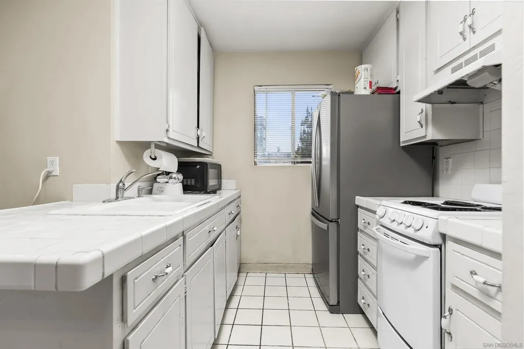 Light & Bright Corner Condo - Low HOA! This charming upstairs 1-bedroom condo is the perfect opportunity for a first-time buyer, investor, or anyone in between. The light-filled home is on the top floor so no one is above you! It offers plenty of cabinet and storage space and off-street parking. Community laundry just steps away but with HOA approval, you could possibly add laundry to living room closet. Located in a well-maintained community with low HOA dues that cover water, sewer and trash. Conveniently located across from the Joan Kroc Center - enjoy fitness, arts, and even ice skating. Quick access to I-8, 94, SDSU, and downtown. Some photos virtually staged.
