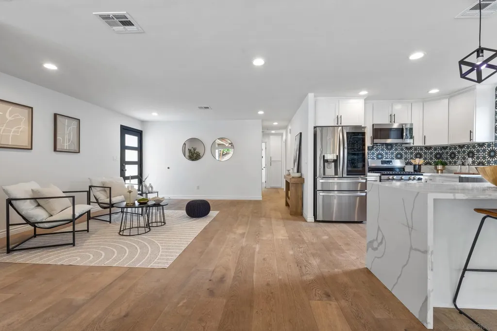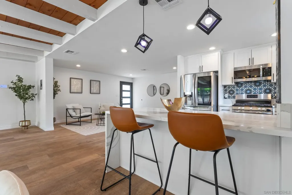 Welcome to 6750 Cowles Mountain Blvd, a spacious 3-bedroom, 2-bathroom main house and 1-Bedroom 1-bathroom ADU in the desirable San Carlos neighborhood! This well-maintained property features an open floor plan with a large living area, updated kitchen with stainless steel appliances, engineered hardwood throughout, and low maintenance landscaping. Enjoy stunning mountain views from the backyard, perfect for outdoor entertaining. The home also includes a 2-car garage with electric car ready charging and solar. Close to nearby parks, shopping, and the popular Cowles Mountain hiking trail.