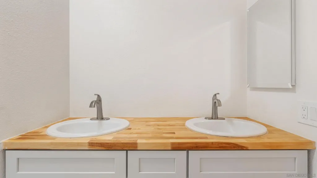 Centrally located renovated bottom floor south facing condo located on the exterior edge of the complex with direct access from Friars Road. Kitchen now boasts the following newly installed items: soft touch cabinets & drawers (Harbor Grey), Butcher Block counter top, sink & garbage disposal. New electrical outlets throughout with GFCI's installed in the kitchen & bathrooms. Kitchen & bedrooms painted in Swiss Coffee & coated with the Egg Shell semi-gloss. Baseboards (new), door jams & doors painted in Pure White & coated with the Egg Shell semi-gloss. Entire ceiling newly painted. Brand new carpet & door handles throughout. New light fixtures in the dining room (to include new ceiling fan), hallway &primary bathroom hallway. Tile floor in the primary bathroom is newly installed. Dual pane windows & sliding glass door provide enhanced tranquility as well as facilitates easy entry into the unit for visitors from Friars. Three newly installed smoke detectors. New cabinets, two vanity sinks & medicine cabinets, overhead fans, toilet, fiber glass shower / trim with two sliding glass bypass doors newly installed in the primary bathroom. Newly installed shower cutoff valve (not visible) which allows for unimpeded repairs &/or changes. Second bathroom boasts newly installed toilet, fixtures, medicine cabinets, shower faucets & trim. Exceedingly close proximity to major freeway access, two shopping malls, restaurants, the Y, University of San Diego, Sea World, Mission Bay & the beaches. Come see for yourself what this dwelling has to offer! Substantial closet & storage space throughout. Community laundry room located at end of main hallway. HOA pays for basic cable & the service provider is Spectrum.