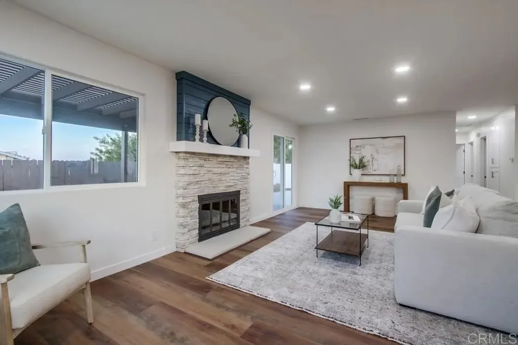 Corner Lot! Fully Remodeled with Panoramic Views! This meticulously remodeled 3-bedroom, 2-bath home is the perfect blend of modern updates and thoughtful design. Featuring brand-new LVP flooring, carpet, windows, sliding doors, roof, HVAC, and fresh interior/exterior paint. The kitchen is a chefs dream with custom cabinetry and quartz countertops. Both bathrooms are elegantly finished with custom tile work and quartz surfaces. The property also includes valuable warranties: a 50-year roof, lifetime windows, 10 year chimney warranty, and 10-year rodent proofing. The front and backyard are well-maintained, offering plenty of space for outdoor activities. Enjoy breathtaking views of Cowles Mountain and the northern landscape. This turn-key home is ready for its next owner!