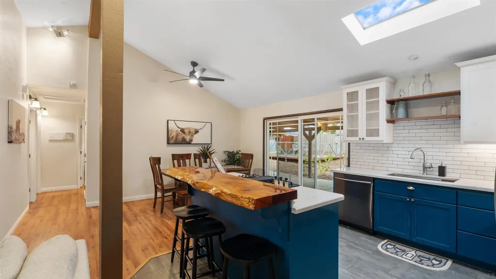 Welcome to this beautifully situated corner-lot home surrounded by natural beauty and panoramic views of Cowles Mountain. The spacious layout offers bright, open living areas and a seamless connection to the outdoors. Thoughtful details throughout the property include unique and artistic metalwork accents on parts of the exterior, adding character and a distinctive architectural touch. Enjoy peaceful mornings on the patio, mature landscaping, and the inviting sense of privacy this home provides. With lower interest rates and an unbeatable location near hiking trails and parks, this property is a must-see! This is on a premium street in the neighborhood.