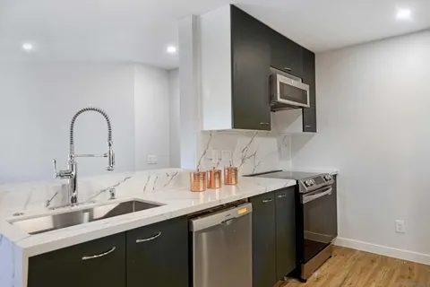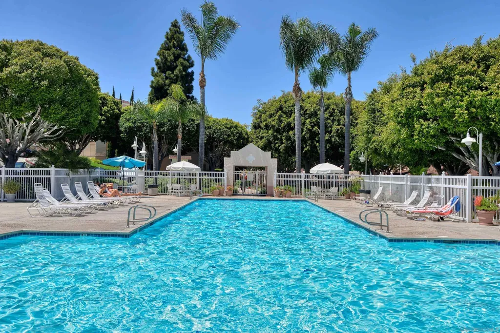 Elegantly remodeled unit (no stairs) features designer kitchen with quartz counters, stainless steel appliances and sleek cabinetry. Tasteful transformation also includes updated bathrooms, tankless water heater, recessed lighting, A/C and new washer dryer. Split bedrooms each enjoy private balcony with treetop vistas. Complex is complete with resort-like pool, spa and fitness center. Central location with proximity to shopping, USD, golf course, and restaurants offers a lifestyle of convenience.