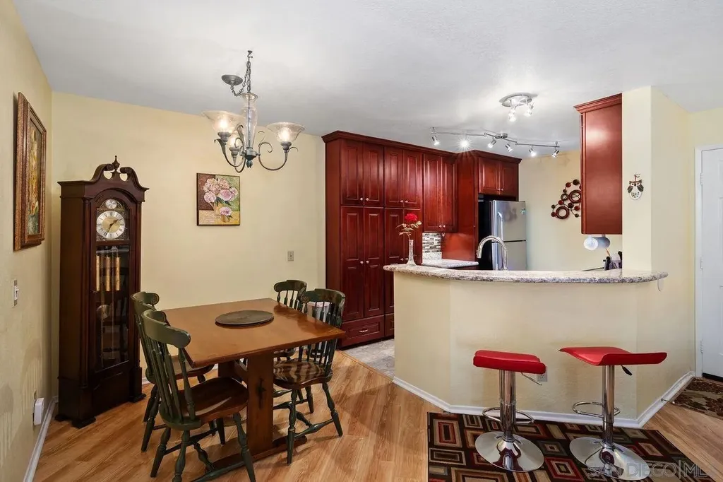 Welcome to this charming Fashion Valley condo offering the perfect combination of comfort, convenience, and style. Thoughtfully designed for easy living, this beautifully maintained 2BR/2BA home features a rare direct entry from the parking area - your tandem garage is just across the hall, only steps from your front door with no stairs at all. Inside, the inviting floor plan provides separate bedrooms and baths on opposite sides for privacy, ideal for guests or roommates. The kitchen showcases gorgeous cherry cabinets soaring to the ceiling, granite countertops, and ample storage, while the bathrooms have been tastefully updated, including a huge walk-in shower with a convenient seat and glass enclosure. Attractive laminate and carpeted flooring flow throughout, complemented by indoor stackable laundry, a cozy fireplace, and a spacious shaded patio perfect for outdoor relaxation. This well-appointed community offers a heated saltwater pool, fully equipped workout room, and beautiful tree-lined streets in a resort-like setting. Perfectly situated just minutes from Fashion Valley Mall, beaches, fine dining, golf courses, and downtown San Diego, this home combines an unbeatable location with practical design and modern upgrades. Optional Purchase: Home may be sold fully furnished, including linens, housewares, and d cor, offering a truly turnkey opportunity for effortless move-in. Property Highlights -Charming Fashion Valley condo designed for easy living with comfort and convenience -Rare direct entry from the parking area - tandem garage just across the hall, no stairs at all -Thoughtful floor plan with separate bedrooms and baths for privacy - ideal for guests or roommates -Gorgeous cherry kitchen cabinets soaring to the ceiling with granite countertops -Updated bathrooms including a huge walk-in shower with seat and glass enclosure -Laminate and carpeted flooring throughout -Indoor stackable laundry for added convenience -Cozy fireplace and a shaded private patio for outdoor relaxation -Community amenities include a heated saltwater pool and fully equipped workout room -Prime location minutes to Fashion Valley Mall, dining, beaches, and downtown -Optional Purchase: Home may be sold fully furnished with linens, housewares, and d cor - truly turnkey!