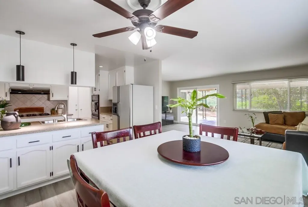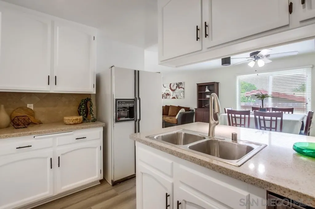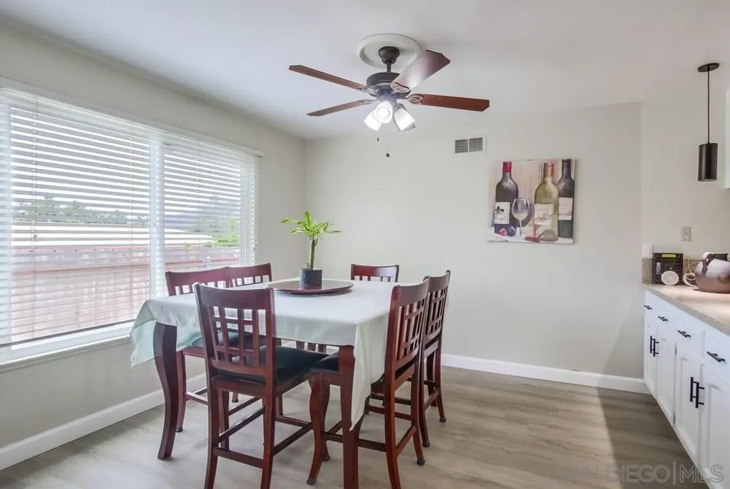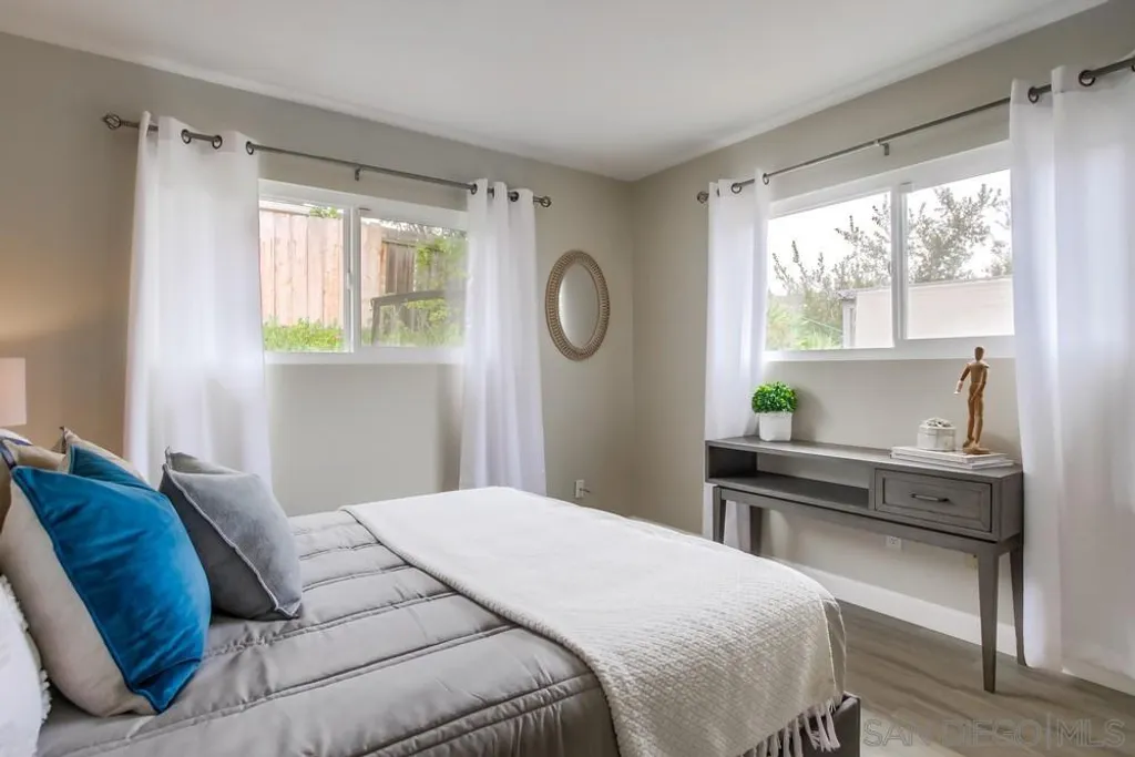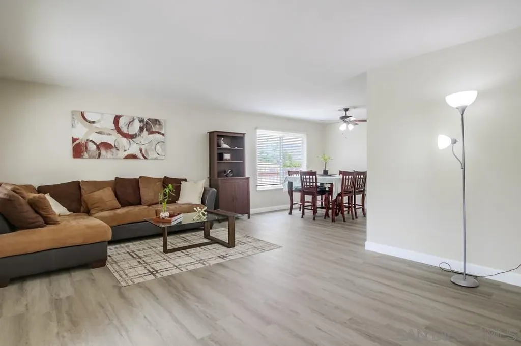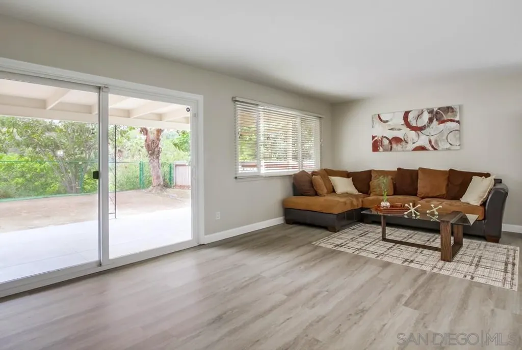 Located in the tranquil and close-knit Princess Garden neighborhood of San Carlos, this well-maintained 4-bedroom, 2-bathroom home offers 1,800 sqft of living space on a spacious 7,100 sqft lot. The home features an open floor plan with new laminate wood floors all throughout, creating a warm and inviting atmosphere. The kitchen boasts of a large countertop, and ample cabinet storage - perfect for cooking and entertaining. For added comfort, the home is equipped with a brand new AC. The bonus room, complete with a cozy fireplace, offers additional living space and has direct access to the expansive backyard. Outside, the backyard is surrounded by mature trees and plants that provide shade and privacy, while offering breathtaking views of Cowles Mountain - ideal for enjoying the outdoors in peace. With a 2-car attached garage and plenty of driveway parking, this home ensures convenience and ample space for your vehicles. Best of all, there are no HOA fees or Mello Roos! Residents of Princess Garden enjoy a tranquil escape with access to nearby Mission Trails Golf Course and the stunning Mission Trails Regional Park, which offers a variety of hiking adventures and activities for all ages. This home is a true gem, offering the perfect combination of comfort, convenience, and natural beauty.
