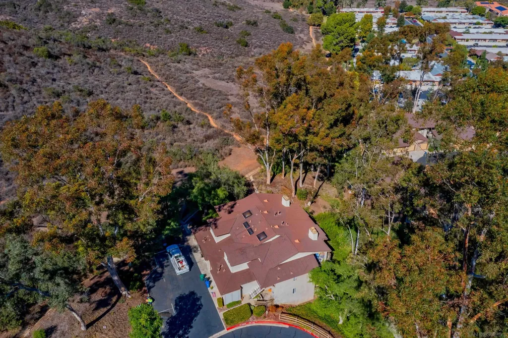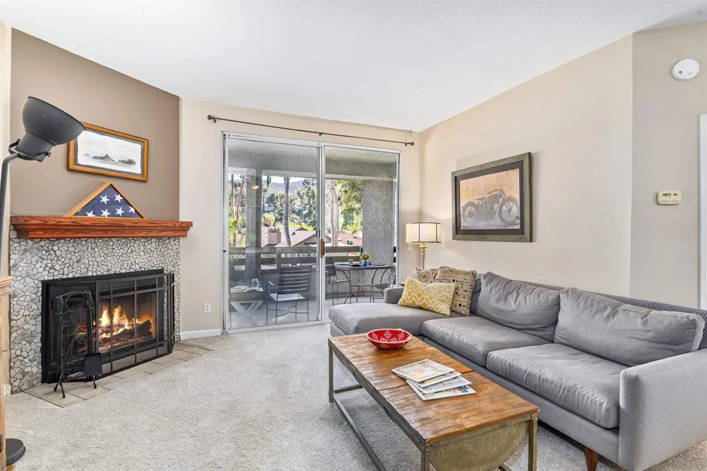 Premium location at Highland Trails in Santee. Rare on market 1st floor, end unit with direct Mission Trails access. Bright 2 bed, 2 bath, 990SF with large all-season balcony. Enjoy steps to the trail for a quick hike or bike. Turnkey inside: updated kitchen with pull-out shelves and granite, refreshed baths, custom natural-gas fireplace, updated lighting, newer carpet. Practical perks: W/D in attached 1-car garage plus assigned space, heated pool and spa, HOA covering water, sewer, trash. Central AC/heat. Lifestyle Bonus: Premium location, zero through traffic, and balcony space you'll actually enjoy, like an extra room. Minutes to 52 and 125, yet wrapped in nature. Perfect for trail lovers, work-from-home peace seekers, and anyone who wants resort vibes at home. Ready to fall in love? This is the right space. Includes W/D in garage.