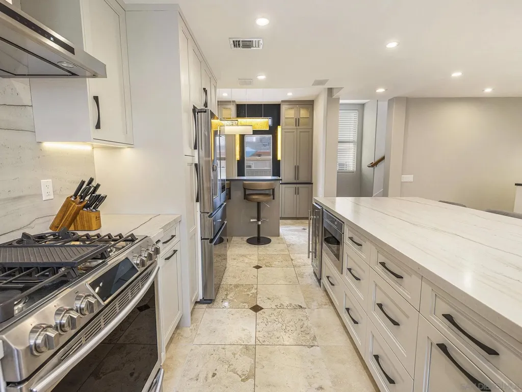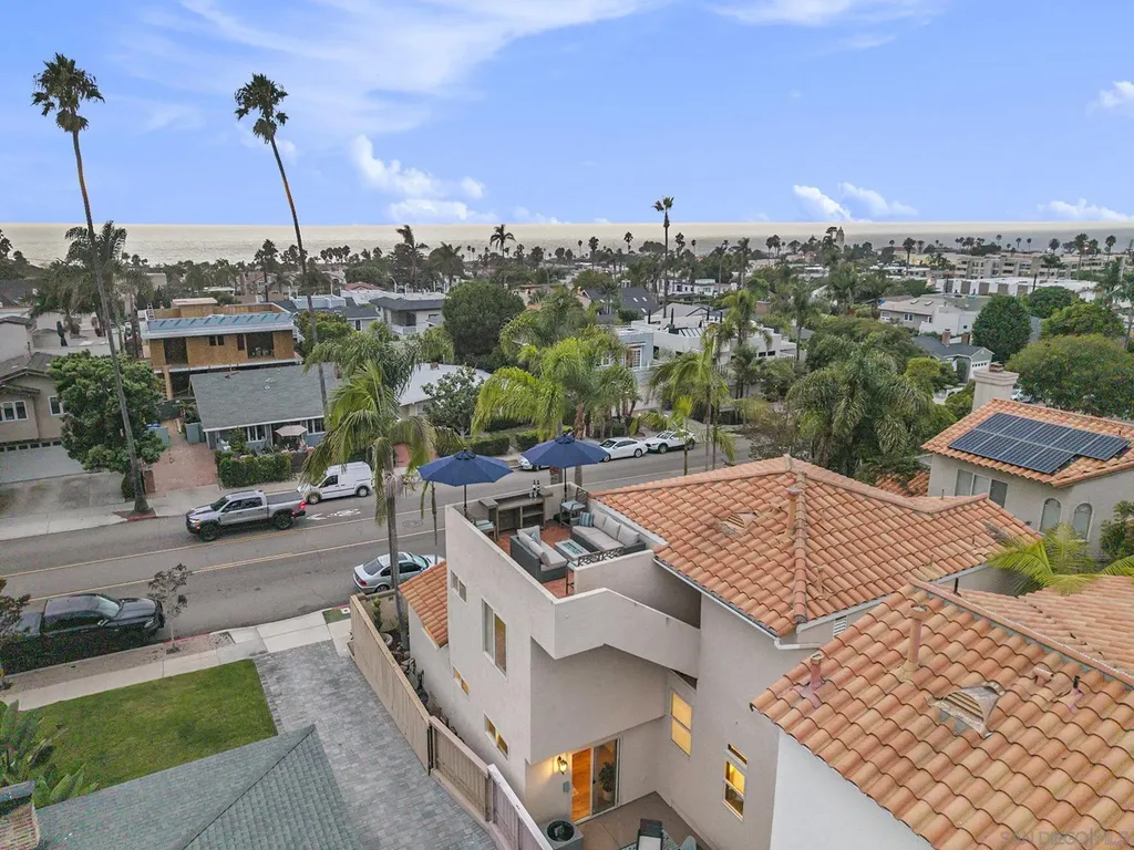 Perched above the Village with sweeping ocean views, this fully reimagined residence blends contemporary design with effortless coastal living. Over $500,000 in thoughtful updates within the past three years create a home that is both refined and refreshingly low-maintenance. Completely detached and entirely private, the home offers a rare combination of space, style, and walkability to the world class amenities La Jolla is renowned for. Enjoy nightly sunset views over the Pacific from both the primary suite or the expansive rooftop terrace. Inside, custom details abound - porcelain slab fireplace, coved ceilings, furniture-grade cabinetry, and curated lighting that is truly a work of art. The kitchen and dining area flow seamlessly with the living space, enhanced by a built-in banquette and a sleek fully custom bar with abundant storage. With 4 bedrooms, 3 full baths, and a powder room, the layout adapts beautifully to suit a variety of lifestyles. The oversized garage provides generous storage, while two outdoor patios offer distinct experiences: a walled front courtyard with a private, elevated feel, and a rear terrace ideal for alfresco dining or lounging. The crown jewel is the oversized rooftop terrace - surprisingly private, endlessly inviting, and perfectly positioned for daily ocean breezes and unforgettable sunsets. Whether as a full-time retreat or an effortless lock-and-go coastal escape, this home delivers the rare blend of quality, views, and in-town location that defines the best of La Jolla living.