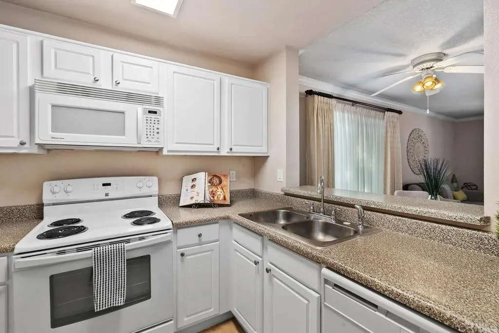Luxurious Corner Unit Verano Condo Resort-Style Living with Exquisite Upgrades in the Heart of La Jolla Colony Step into sophistication and comfort with this stunning corner, Mediterranean-style end unit, perfectly positioned in the highly sought-after Verano community of La Jolla Colony. This bright, ground-level home combines elegant design, modern upgrades, and resort-inspired amenities all just moments from the very best that La Jolla has to offer. From the moment you enter, youll be greeted by an open, light-filled floor plan enhanced with beautiful crown moldings, rich wood flooring, and dual-pane windows that invite in natural light from multiple directions. The spacious kitchen flows seamlessly into the living and dining areas, creating the perfect space for entertaining or relaxing in style. The beautifully renovated bathrooms are a rare find in this community thoughtfully redesigned with high-end fixtures, custom tilework, and spa-like finishes that elevate your daily routine into an experience of luxury. The generous primary suite offers a large walk-in closet and a serene sense of retreat. Enjoy your morning coffee or unwind at sunset on your private patio, surrounded by lush greenery and the tranquil ambiance of La Jolla Colony. As a true corner unit, this home offers additional privacy, fewer shared walls, and extra windows that fill every room with sunshine and fresh air. Practical comforts abound, including no stairs, a side-by-side washer and dryer, ample storage, and three convenient parking spaces two in the attached garage building and one additional on-site. The Verano community delivers a resort-style lifestyle, featuring two sparkling pools, two relaxing spas, a well-equipped fitness center, an inviting internet caf, and plenty of guest parking all surrounded by manicured greenbelts, mature trees, and peaceful walking paths. Enjoy unmatched convenience with UCSD, Westfield UTC, Rose Canyon Preserve, La Jolla Colony Park, and local dining, shopping, and fitness studios just steps away. With easy access to major freeways, Scripps, Torrey Pines, and La Jolla Shores, this location truly offers the best of coastal living. Experience a home that stands apart where refined design, exceptional upgrades, and the coveted privacy of a corner unit come together seamlessly. Dont miss your chance to own one of Veranos most desirable homes!