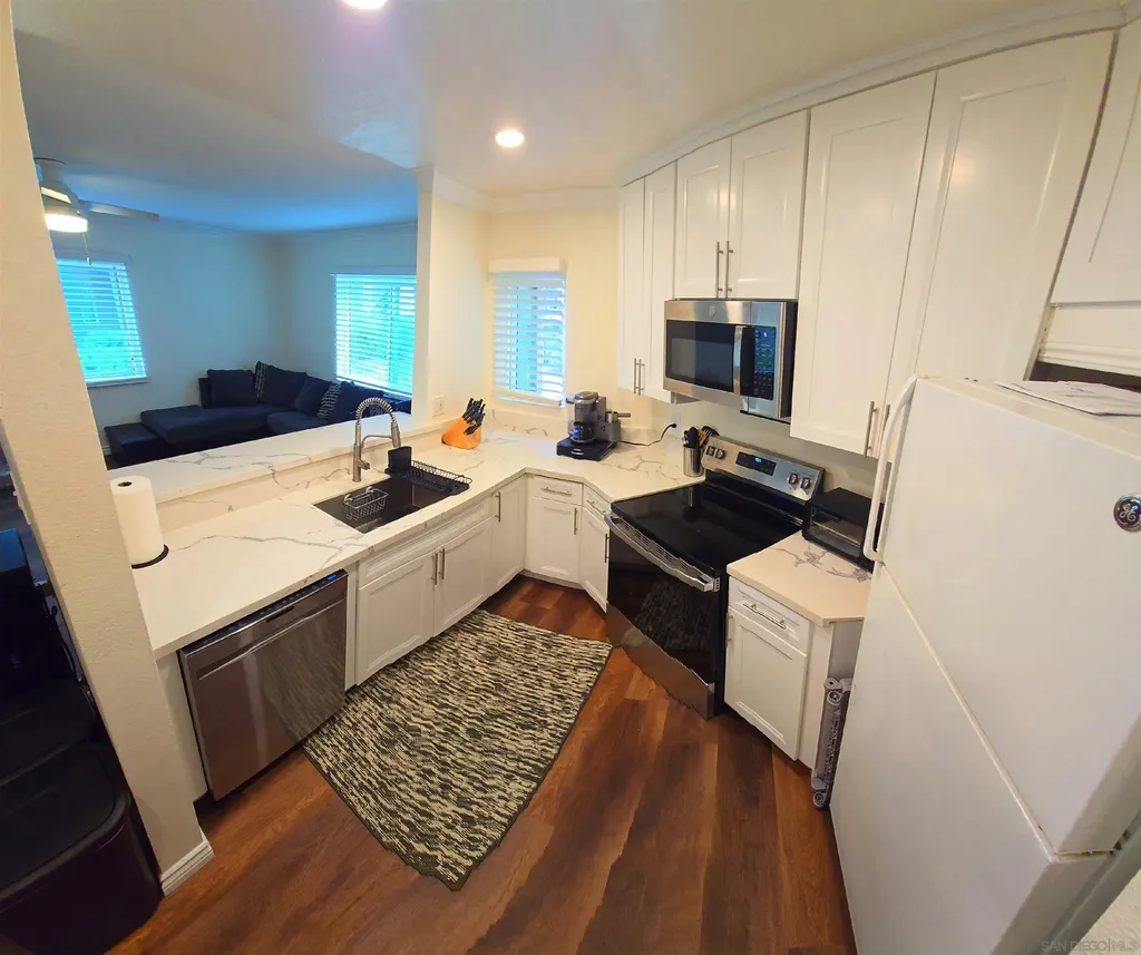 Completely remodeled downstairs end unit with no shared side walls! This home has been fully updated with new flooring, fresh paint and texture, modern cabinetry, and more. Features include a spacious walk-in closet and a full-size washer and dryer. The community offers resort-style amenities including a dog park, expansive greenbelt with mature trees, pool, spa/sauna, and a top-notch fitness center. Conveniently located near grocery stores, shopping, UTC Mall and Doyle Elementary School.