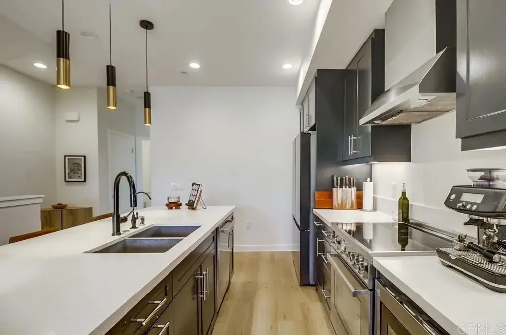 Welcome to your modern La Mesa townhome with over $50k in upgrades!! Walkable to La Mesa Village shops, restaurants, farmers market. This 3-bedroom, 3-bath home includes an optional 4th bedroom and bath already plumbed and wired and ready to go, it's currently used as a movie room. 9 foot and 10' ceilings make the home spacious and airy. Seller has done this place up very nicely including $10k+ high end designer appliances, $25k in custom flooring upgrades, and a $15k entertainment center downstairs. The designer kitchen is equipped with high end Bertazzoni appliances and top of the line Samsung refrigerator, and two spacious patios for indoor-outdoor living. Energy efficiency comes built-in with owned solar, low SDGE costs, and split-level thermostats. Additional highlights include a fully finished 2-car garage with EV charging capability, Ring doorbell, and low HOA fees. With walkability to the Villages restaurants, coffee shops, boutiques, and Farmers Marketplus quick access to Lake Murray, Mission Trails, and the trolleythis home combines style, convenience, and location in one perfect package.