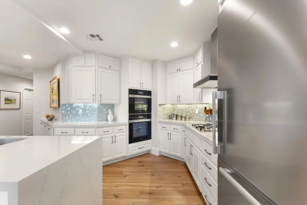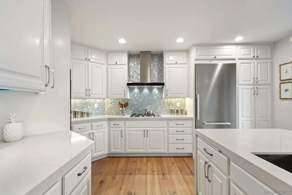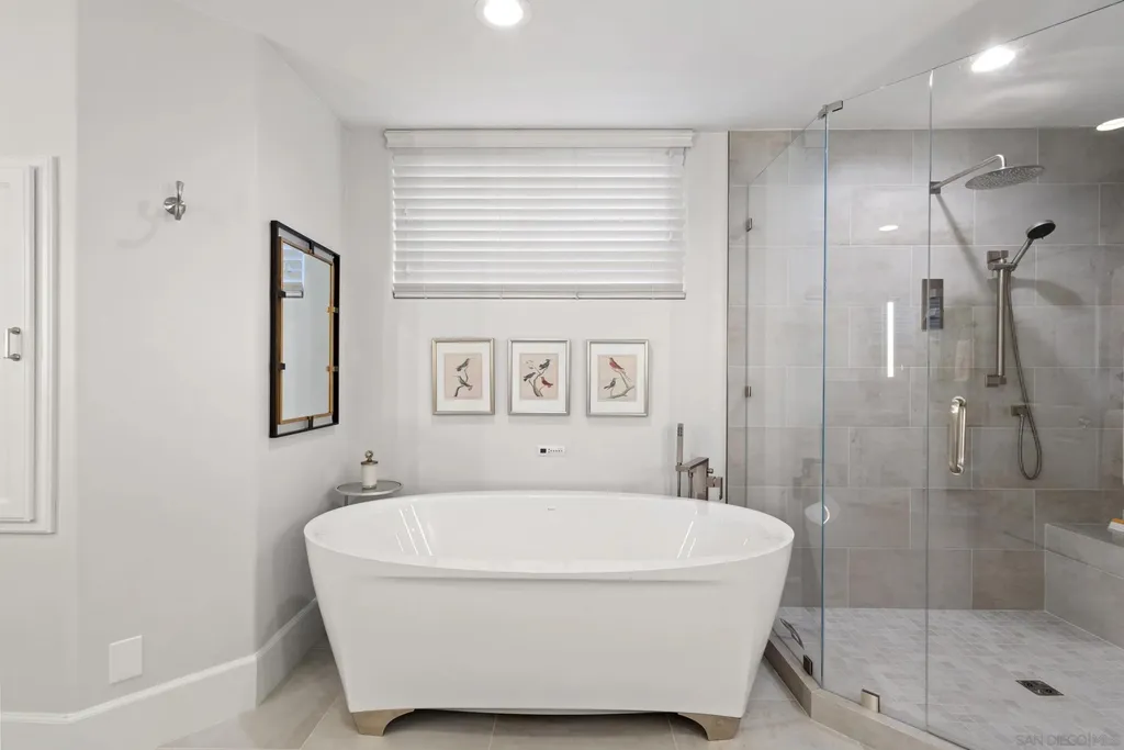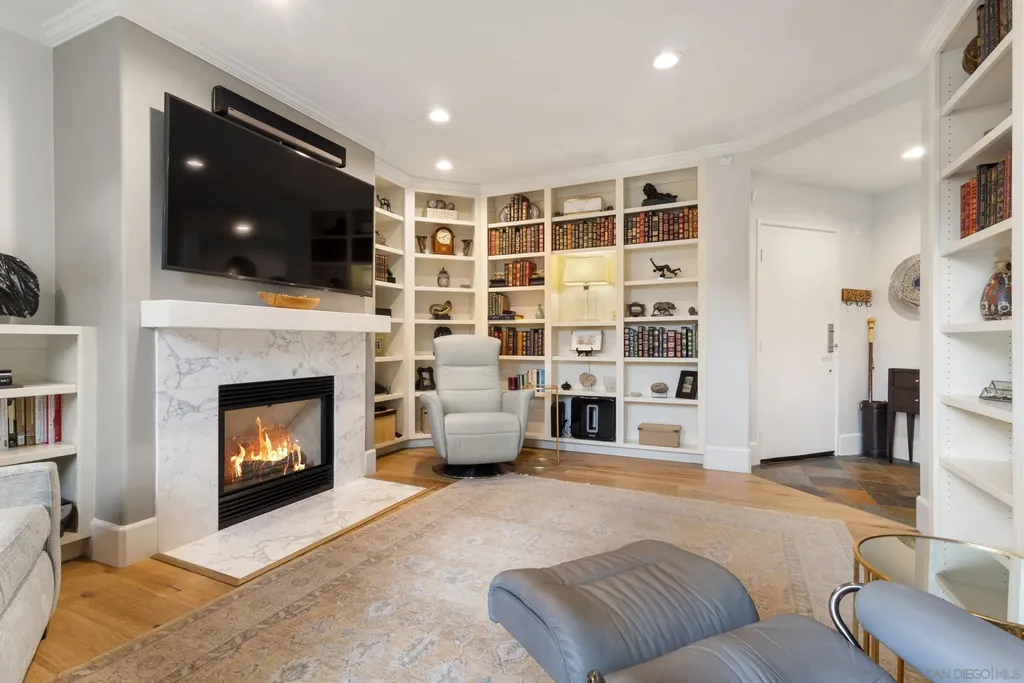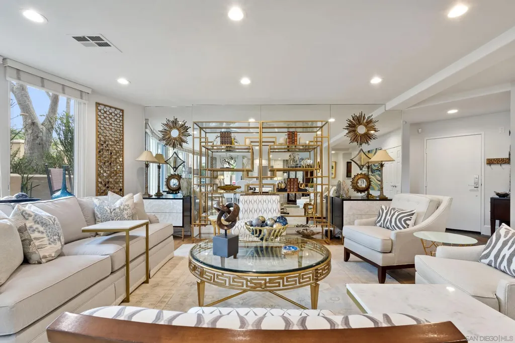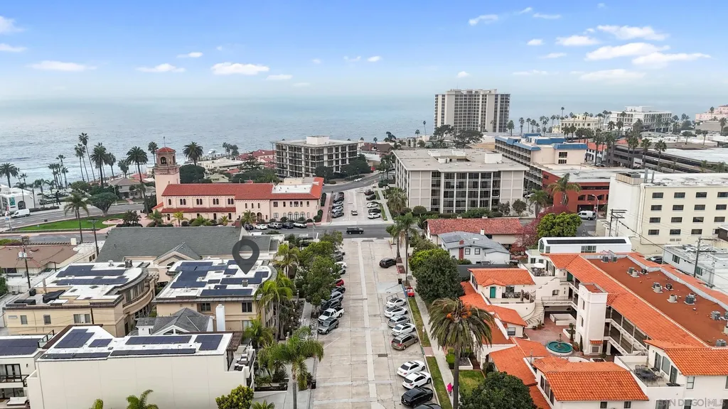 Experience refined single-story living just moments from the ocean and the energy of La Jolla Village. This beautifully reimagined 3-bedroom, 2.5-bath residence offers 2,460 sq. ft. of coastal charm and contemporary luxury in a tranquil, tree-lined setting just 2.5 blocks from the beach and close to world-class dining, shopping, The Bishop's School, and the La Jolla Art Museum. Thoughtfully updated throughout, the home features owned solar, new interior paint, plush bedroom carpeting, upgraded bathrooms, and elegant French Oak floors. The chef's kitchen is equipped with all Miele appliances, a gas cooktop, stainless sink, quartz countertops, full-height cabinetry, and a striking backsplash. The open-concept living area centers on two sun-filled patios ideal for al fresco dining or quiet relaxation, along with a versatile den/media room perfect for a TV lounge, reading room, or office. The serene primary suite offers a generous walk-in closet and a remodeled spa-like bath. A dedicated laundry room and abundant storage enhance daily convenience. Additional highlights include a two-car garage with extensive storage plus a separate room with a SubZero refrigerator - ideal as an office, gym, or storage space. The home also offers air conditioning, secure entry, and elevator access. With its walkable location, timeless updates, and boutique setting of only five homes, this residence captures the essence of La Jolla Village living - elegant, effortless, and coastal.