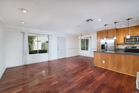 Welcome to this bright and airy two story unit in highly desirable Genesee Highlands. Features include wood floors downstairs, crown molding, dual-pane windows, and in unit laundry. The kitchen features upgraded cabinets and stainless steel appliances, and the bathroom has stylish marble tile touches. Youll have your own garage space plus a driveway spot. Community amenities include a sparkling pool and an expansive park and playground. Just a short stroll to Doyle Park, UTC shopping, and the trolley. Easy freeway access and a quick drive to UCSD and San Diegos stunning beaches. Don't miss this awesome opportunity in a central location!
