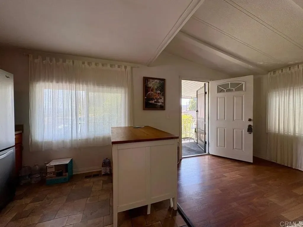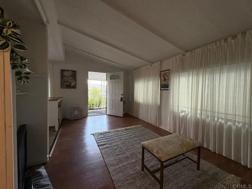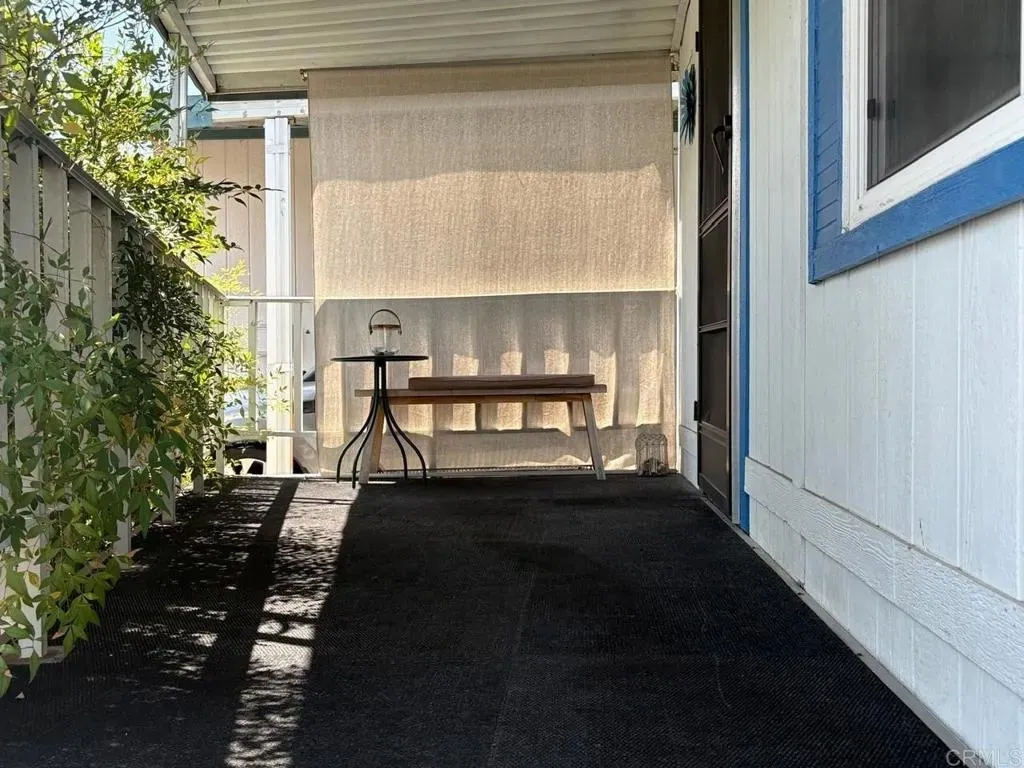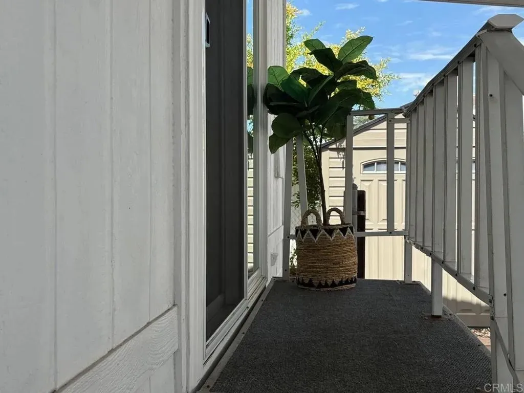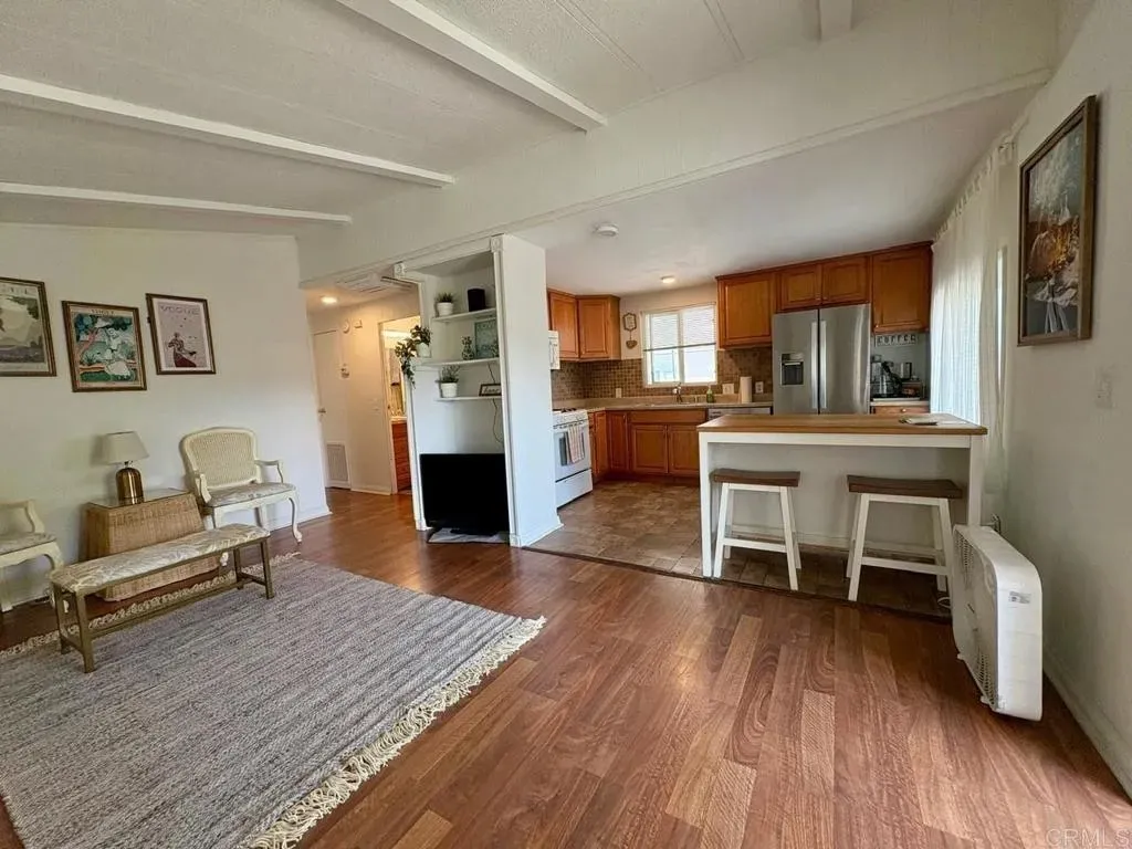 Low $930 space rent. All-ages. Tastefully remodeled home featuring rich Pergo style flooring, copper plumbing, dual pane windows and a sliding glass door. Drywall in living areas. Gorgeous kitchen has beautiful wood cabinetry, microwave over the stove, tile backsplash and stainless steel dishwasher & side by side refrigerator with bottom freezer. Inviting living room with beam ceiling. Large bedrooms and washer/dryer connections. Front porch entry with enjoyable views! Enjoy your morning coffee or afternoon tea on your own covered deck. There is a storage shed, central air and a large pomegranate tree. Attached carport for 2 vehicles. Valley View Estates is a beautiful and well kept all-age community. This home is beautiful and affordable! Enjoy all this all-age community has to offer! This is a beautiful community located about 17 miles east of La Jolla Beaches. Take Highway 52 or 125 and be anywhere within a few minutes. This great all age community features a dog park, a swimming pool and a clubhouse. Fantastic school district is the biggest plus! Santee Lakes, Mission Trails and great shopping & dining are very close by. Well managed & beautifully kept grounds. LBD2388.