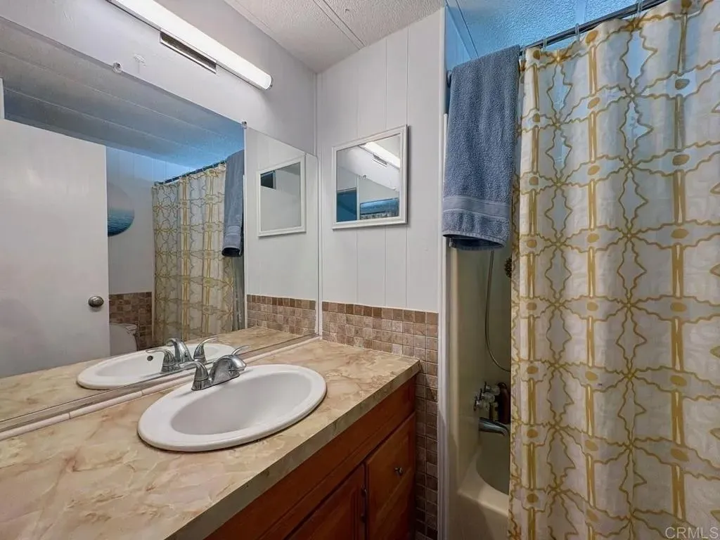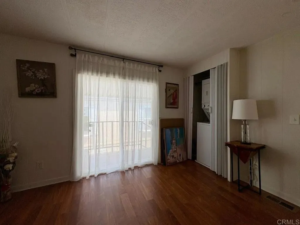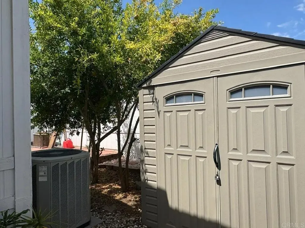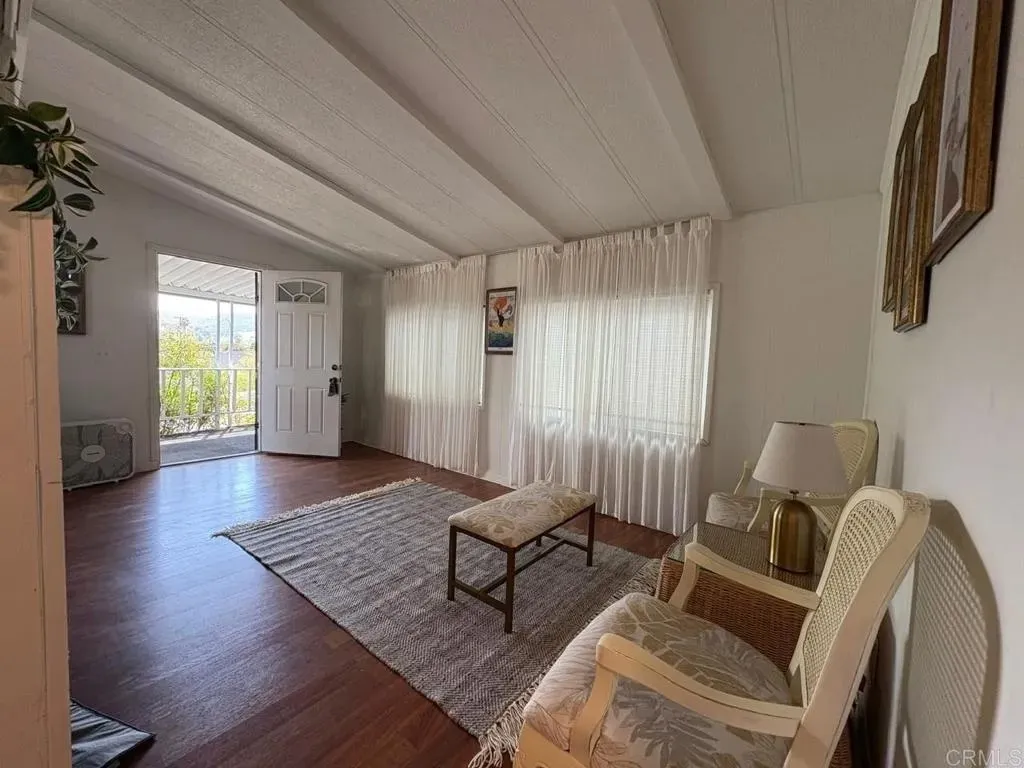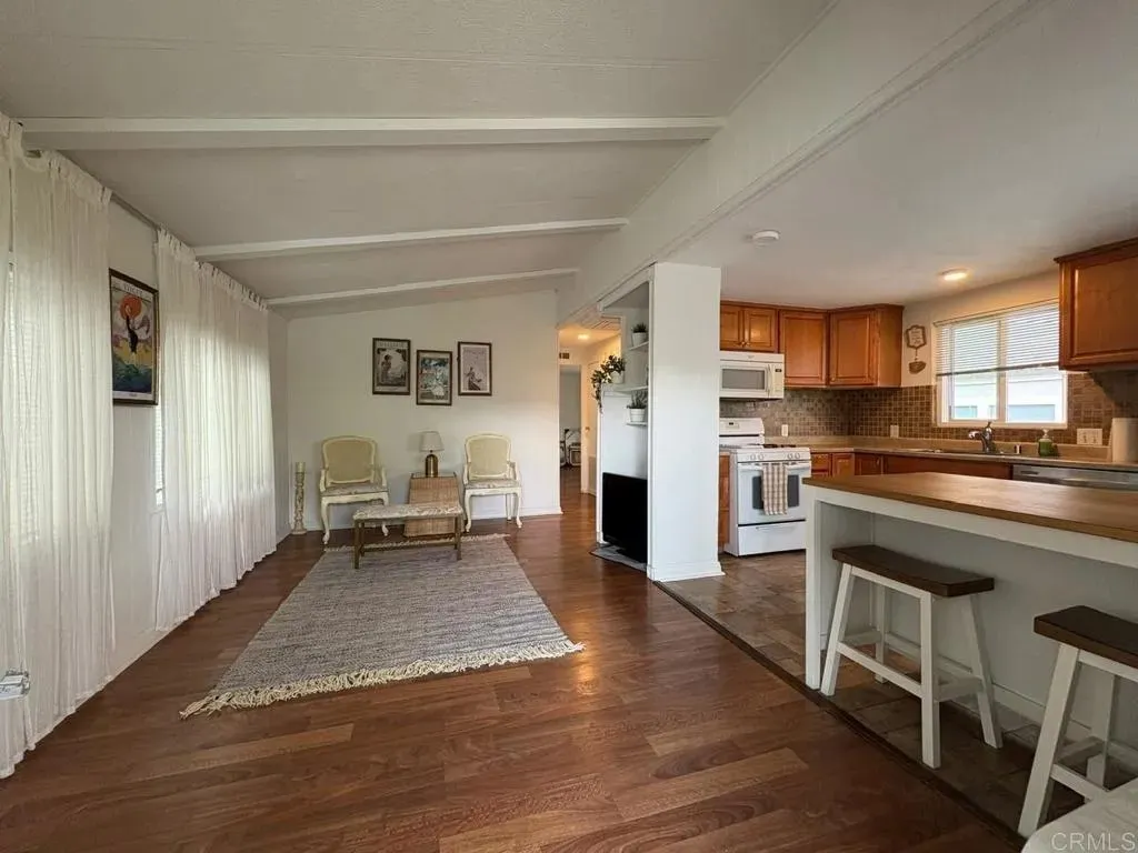 Low $930 space rent. All-ages. Tastefully remodeled home featuring rich Pergo style flooring, copper plumbing, dual pane windows and a sliding glass door. Drywall in living areas. Gorgeous kitchen has beautiful wood cabinetry, microwave over the stove, tile backsplash and stainless steel dishwasher & side by side refrigerator with bottom freezer. Inviting living room with beam ceiling. Large bedrooms and washer/dryer connections. Front porch entry with enjoyable views! Enjoy your morning coffee or afternoon tea on your own covered deck. There is a storage shed, central air and a large pomegranate tree. Attached carport for 2 vehicles. Valley View Estates is a beautiful and well kept all-age community. This home is beautiful and affordable! Enjoy all this all-age community has to offer! This is a beautiful community located about 17 miles east of La Jolla Beaches. Take Highway 52 or 125 and be anywhere within a few minutes. This great all age community features a dog park, a swimming pool and a clubhouse. Fantastic school district is the biggest plus! Santee Lakes, Mission Trails and great shopping & dining are very close by. Well managed & beautifully kept grounds. LBD2388.