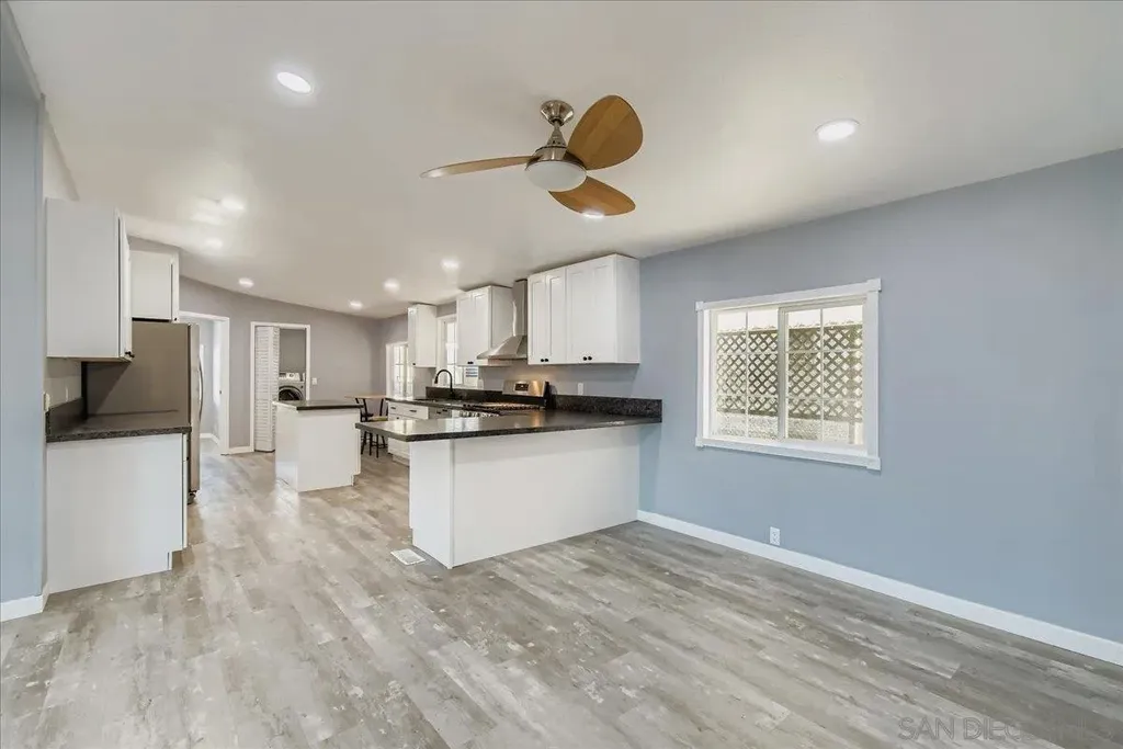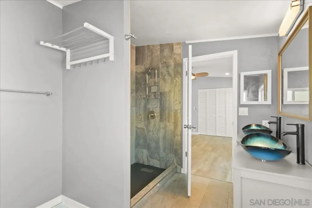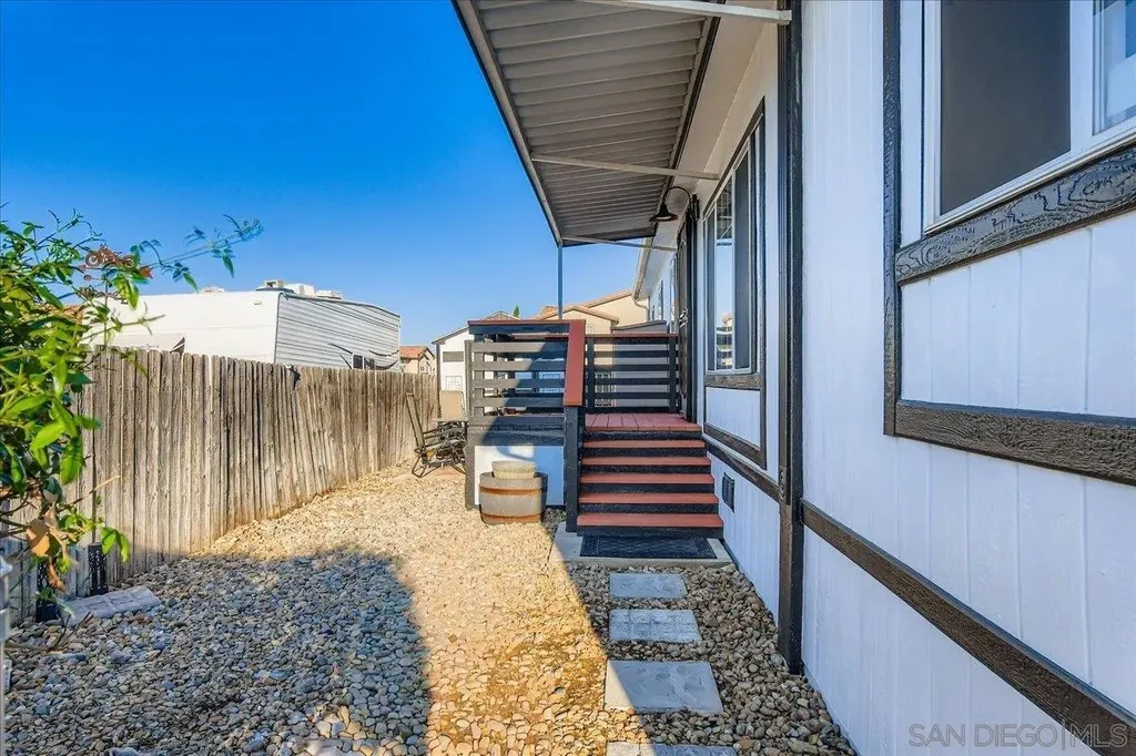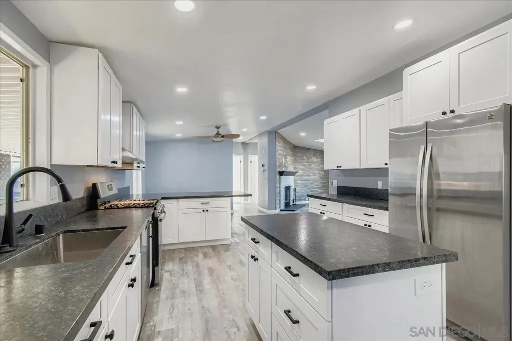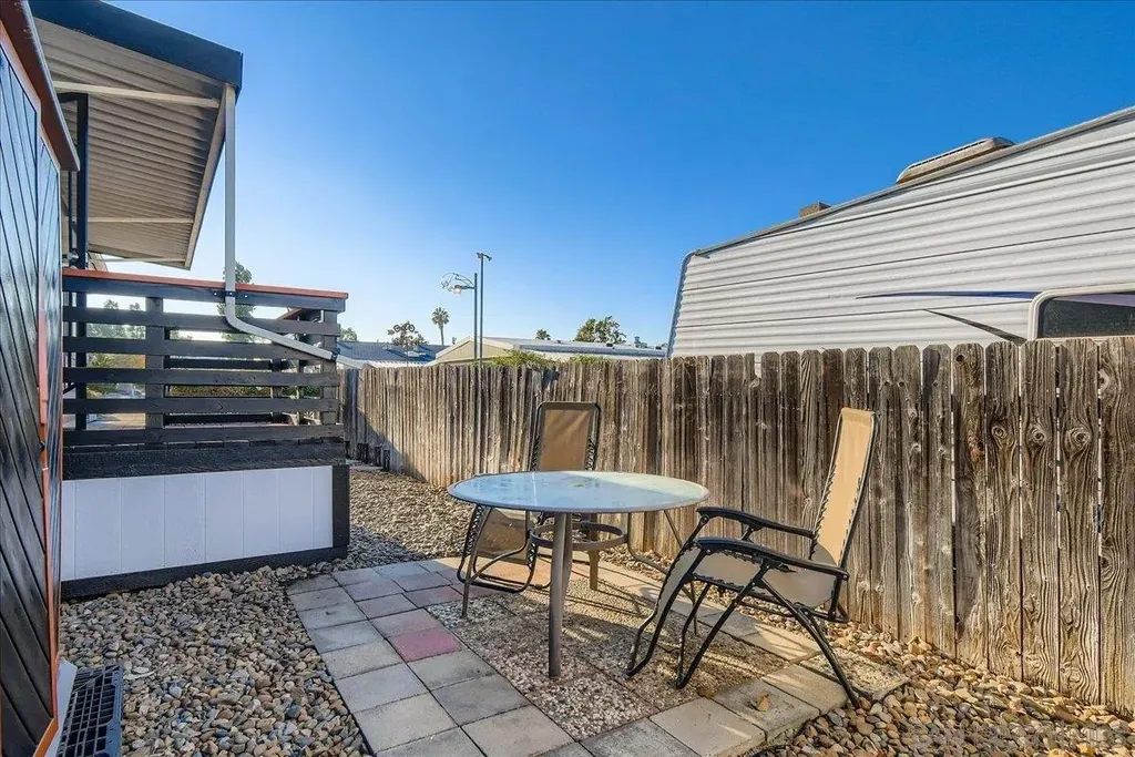 Fully remodeled and move-in ready, this stunning 3-bedroom plus BONUS ROOM, 2-bath home offers nearly 1,500 sq. ft. of upgraded living space in one of Santee's most desirable all-age mobile home communities. Inside, you'll find vaulted-style ceilings, a large skylight, recessed lighting throughout, and a cozy fireplace in the spacious open-concept living area. Fresh interior and exterior paint and new luxury vinyl plank flooring create a bright, modern feel. The upgraded kitchen is a show stopper with features that include natural granite countertops - including a custom island - stainless steel appliances, sleek cabinetry, modern fixtures, and plenty of storage. The oversized primary suite offers a custom walk-in shower, dual-sink vanities, and elegant finishes. A large bonus room provides flexible space for a home office, playroom, or whatever your preference. Upgrades include a new HVAC system, new roof, dual-pane windows, updated plumbing, tankless water heater, and two outdoor storage sheds. Outside, enjoy a low-maintenance backyard and a spacious side yard ideal for gardening, dining, or simply unwinding, with guest parking nearby. Set in a rent-controlled, well-maintained community with a pool and clubhouse, this home is walking distance to parks, trails, shopping, dining, and schools. Stylish, spacious, and fully updated - this home truly has it all!