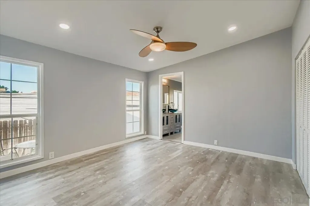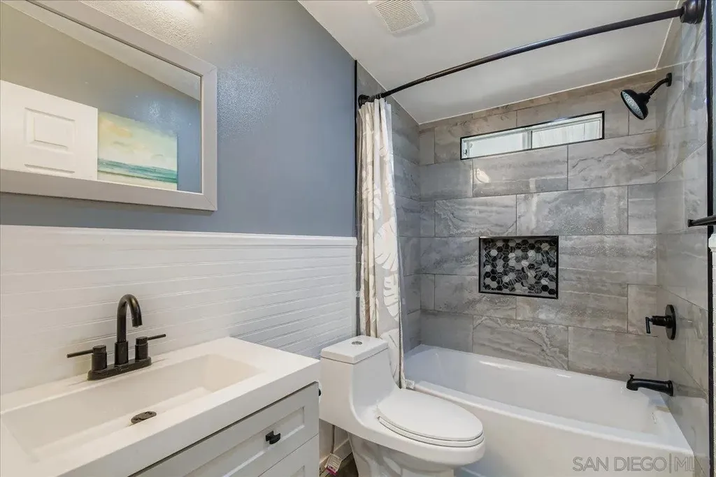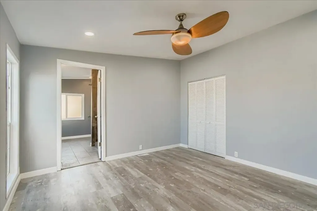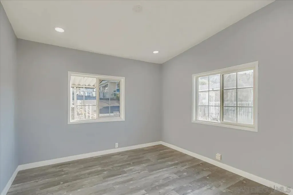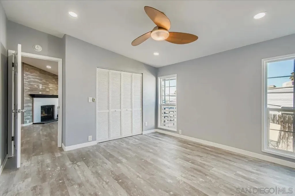 Fully remodeled and move-in ready, this stunning 3-bedroom plus BONUS ROOM, 2-bath home offers nearly 1,500 sq. ft. of upgraded living space in one of Santee's most desirable all-age mobile home communities. Inside, you'll find vaulted-style ceilings, a large skylight, recessed lighting throughout, and a cozy fireplace in the spacious open-concept living area. Fresh interior and exterior paint and new luxury vinyl plank flooring create a bright, modern feel. The upgraded kitchen is a show stopper with features that include natural granite countertops - including a custom island - stainless steel appliances, sleek cabinetry, modern fixtures, and plenty of storage. The oversized primary suite offers a custom walk-in shower, dual-sink vanities, and elegant finishes. A large bonus room provides flexible space for a home office, playroom, or whatever your preference. Upgrades include a new HVAC system, new roof, dual-pane windows, updated plumbing, tankless water heater, and two outdoor storage sheds. Outside, enjoy a low-maintenance backyard and a spacious side yard ideal for gardening, dining, or simply unwinding, with guest parking nearby. Set in a rent-controlled, well-maintained community with a pool and clubhouse, this home is walking distance to parks, trails, shopping, dining, and schools. Stylish, spacious, and fully updated - this home truly has it all!