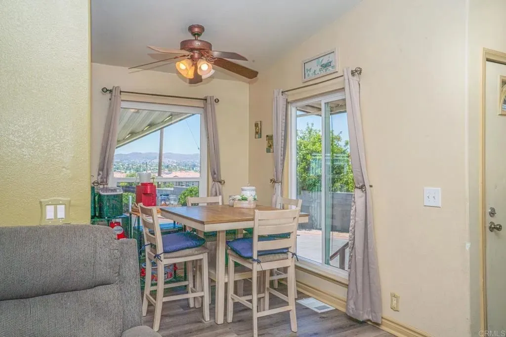 Home ownership made affordable! This home is Located in the back of a very well maintained- all ages park, with views of the city (owner can see fireworks during the 4th!) Upgrades include NEWER Windows and Roof (only 4 years old), new AC floor vents, gutters, updated flooring, and the 2nd bathroom just underwent a remodel! Full GLOW UP! Full size washer, dryer, and refrigerator all STAY. Theres a community pool, laundry facility, and a dog park. Plus there's a row of GUEST PARKING, just feet from the front door. Its a few minutes from a fun day in Santee Lakes, from enjoying a hike at Mission Trails, and just down the street from food and shopping at the Santee Trolley Center! Space rent is $995 a month. Can accept Chattel loans and CASH.