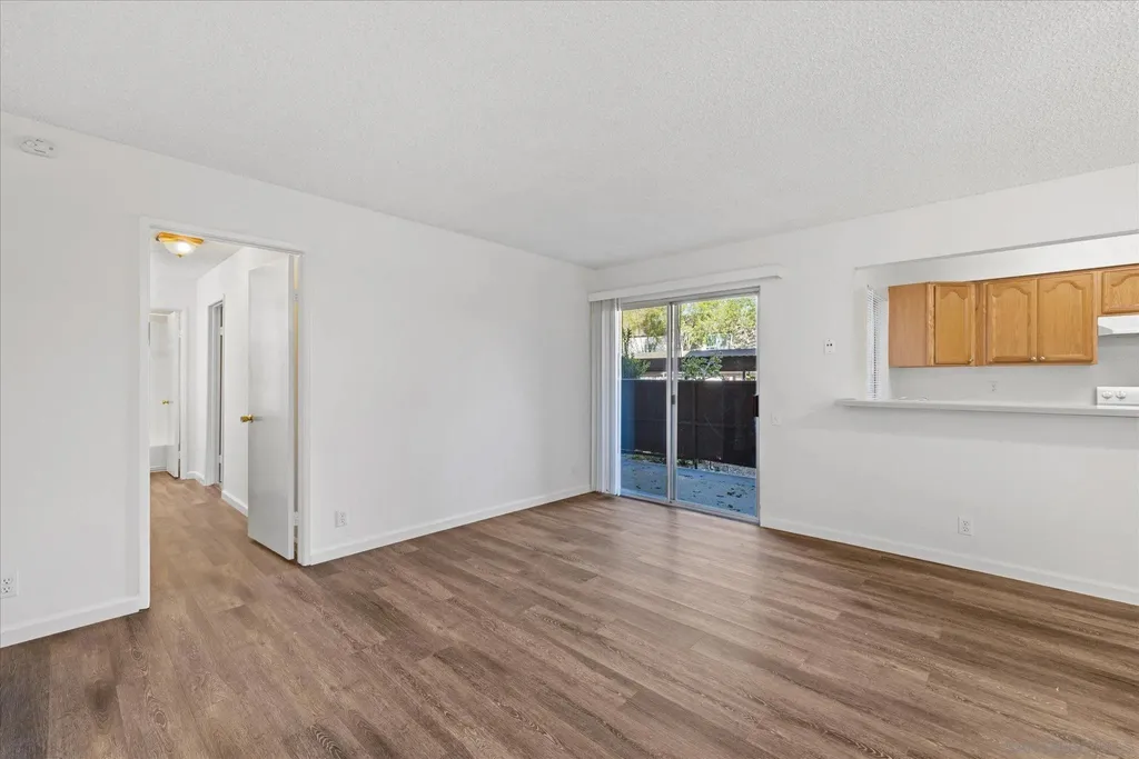 Discover comfort and convenience in the heart of Mission Valley! Tucked within a quiet, tree-lined community, this spacious condo offers a serene escape with cool summer breezes and cozy warmth in winter. Step inside to a generous living area featuring newer plank flooring and a sliding door that opens to your private patio - perfect for relaxing or entertaining. A separate dining area connects seamlessly to the kitchen, which boasts a new refrigerator and stove (installed in 2025). The extra-large bedroom includes fresh carpeting and a bonus space - ideal for a home office or reading corner, as well as private access to the patio. The bathroom was refreshed in 2024 with a refinished tub and updated vanity lighting, adding a modern touch. Ample storage can be found in the hallway and bedroom closets, keeping everything neatly organized. Beyond your front door, enjoy resort-style amenities: a sparkling pool and spa, BBQ area, clubhouse, and on-site laundry facilities. With an assigned parking space and a prime location minutes from shopping, dining, and the scenic San Diego River Trail, this Mission Valley gem perfectly balances convenience, comfort, and style - right in the center of all that San Diego has to offer.