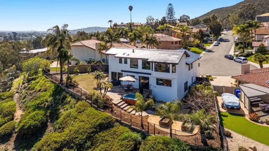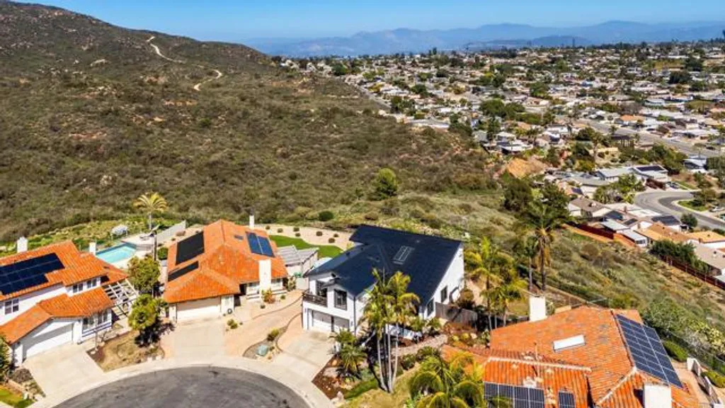 New Price; Great Opportunity. So much to experience here at 8089 Wing Span. Tucked away at the end of a peaceful cul-de-sac and perched on over an acre of land adjacent to Cowles Mountain, this absolutely impeccable home offers stunning panoramic views and an unparalleled sense of privacy. Lovingly remodeled and meticulously maintained by the same family for 30 years, every detail has been thoughtfully considered and beautifully executed. Sitting high above the street, the home greets you with elevated curb appeal and low-maintenance, professionally designed front landscaping. Inside, soaring ceilings and an abundance of natural light create a warm and inviting atmosphere the moment you enter. At the heart of the home is a show stopping kitchen featuring classic shaker cabinetry, designer tile, premium Thermador appliances, cleverly integrated storage, and a charming eat-in nook that frames gorgeous mountain views. The split-level floor plan offers flexibility, with a spacious family room and a convenient half bath located on the lower levelideal for relaxing or entertaining. Upstairs, youll find four generously sized bedrooms with plush carpeting, 2nd floor laundry room, and a luxurious primary suite that feels like a private retreat. The spa-inspired bathroom boasts a soaking tub, separate shower, dual vanity areas, and a massive walk-in closet designed for both comfort and style. The backyard is a true oasis, offering unobstructed mountain views, a relaxing hot tub, raised planter beds for gardening, and low-maintenance landscaping that allows you to fully enjoy the outdoor space without the upkeep. Energy efficiency meets modern convenience with an owned solar system and two whole house backup batteries. Located on one of the most desirable streets in San Carlos, the property also benefits from an incredibly low annual HOA fee of just $350, which covers the maintenance of the canyon behind the home. This is a rare opportunity to own a stunning, move-in ready home in one of San Diegos most sought-after neighborhoods.