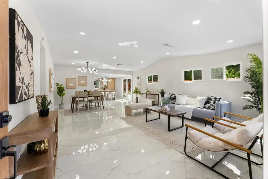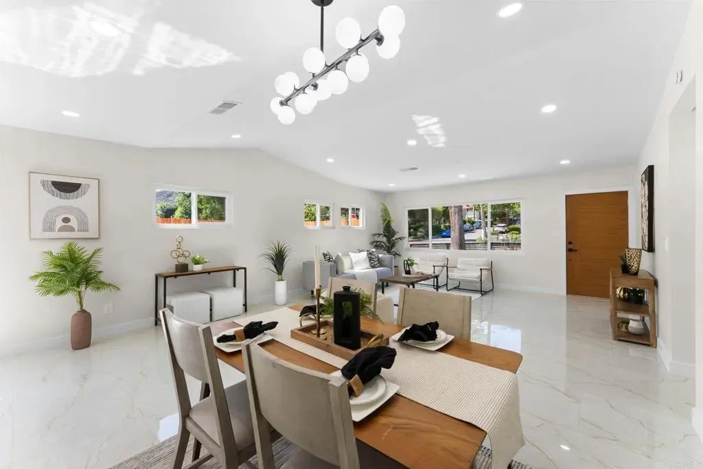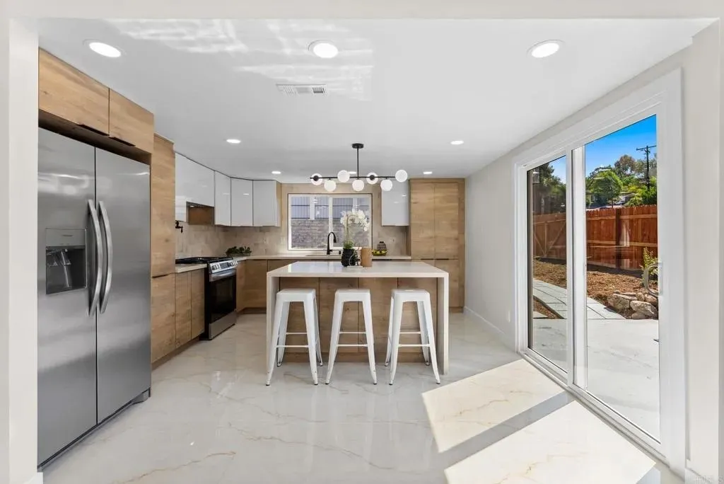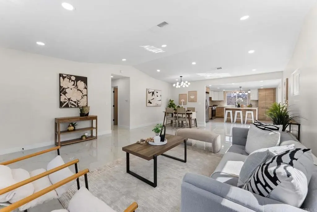 Welcome to your dream home! This newly remodeled single-family residence offers 4 bedrooms, 2 bathrooms, and a 2-car garage, combining modern elegance with everyday comfort. From the moment you arrive, youll be captivated by the fresh, contemporary appeal, complete with brand-new landscaping that frames the home beautifully. Step inside to discover a light-filled open layout adorned with all-new modern lighting, fresh interior and exterior paint, and thoughtfully selected finishes that create a warm yet sophisticated atmosphere. The stunning kitchen is the heart of the home, featuring brand-new stainless steel appliances, sleek cabinetry, and stylish countertops! Perfect for both casual meals and gourmet cooking. Each bathroom has been completely reimagined with high-end fixtures and a clean, modern design. Every detail has been updated, from the doors to the flooring and hardware, offering a true move-in-ready experience. Enjoy effortless access to Freeway 52 and Freeway 125, making it easy to reach downtown San Diego, the beautiful coastline, or the scenic trails and open spaces of Mission Trails Regional Park. Whether youre entertaining friends, enjoying a quiet evening in, or relaxing in your backyard, this home delivers the perfect balance of style, function, and comfort. With its fresh, modern look and prime condition, this property stands out as a rare find in todays market, ready for you to call it home. VA Buyers are welcome.