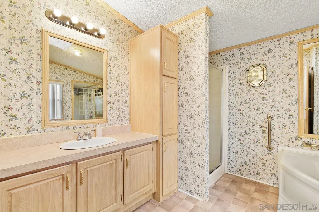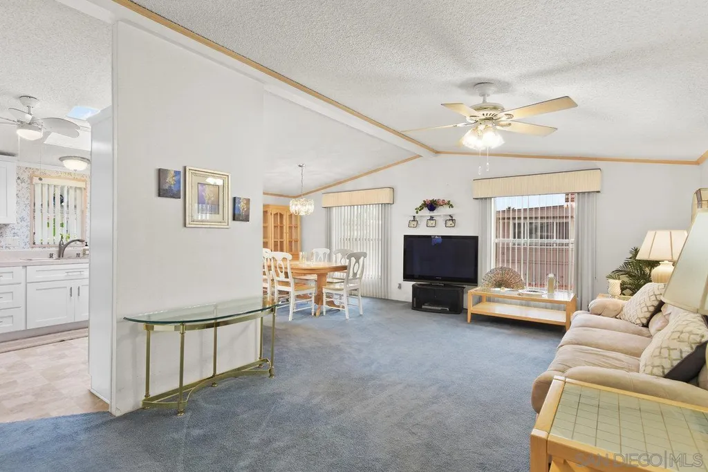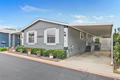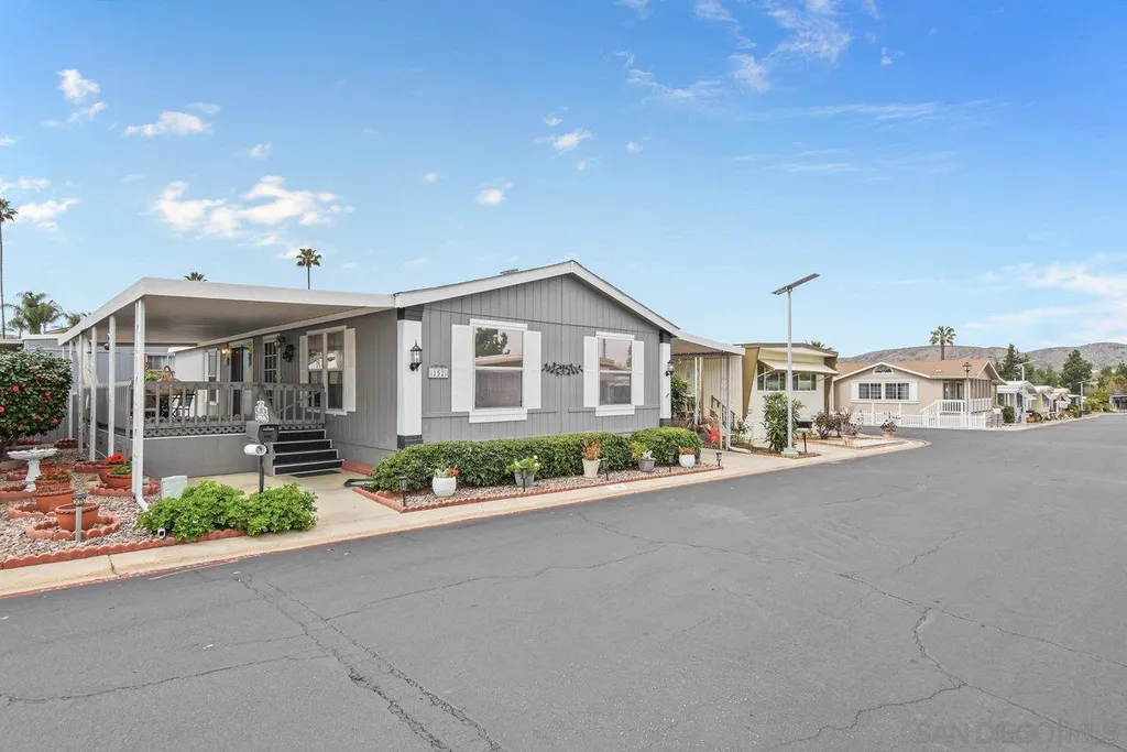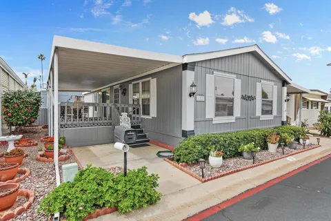 Meadowbrook! Santee's Premier Resort Style Age 55+ Manufactured Home Park! This 1999 Spacious Floor Plan Features 2 bedrooms-Huge Master & 2nd Bedroom built in Murphy Bed + optional 3rd bedroom-Now open Family Room/sitting area with slider to covered Porch & 2 Full baths! Move in ready. Amenities: Huge Pool, Jacuzzi and sauna, Clubhouse with pot lucks, entertainment, Bingo, crafts, yoga and game nights. Putting Green, Library on-site car wash. Close to freeways, shopping, parks with pickle ball & hiking trails