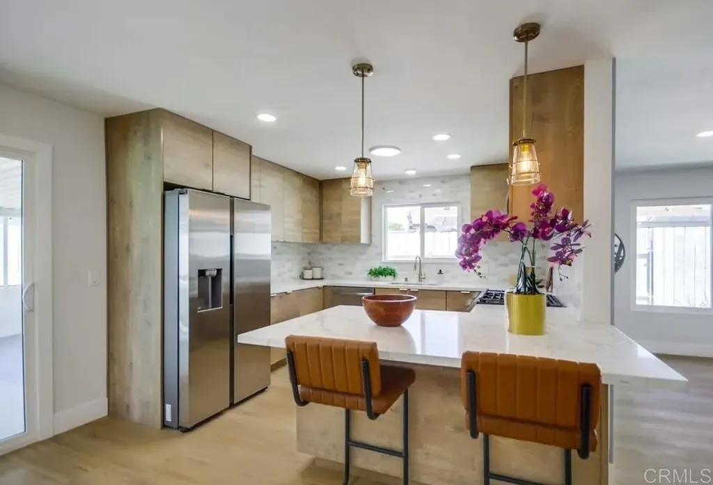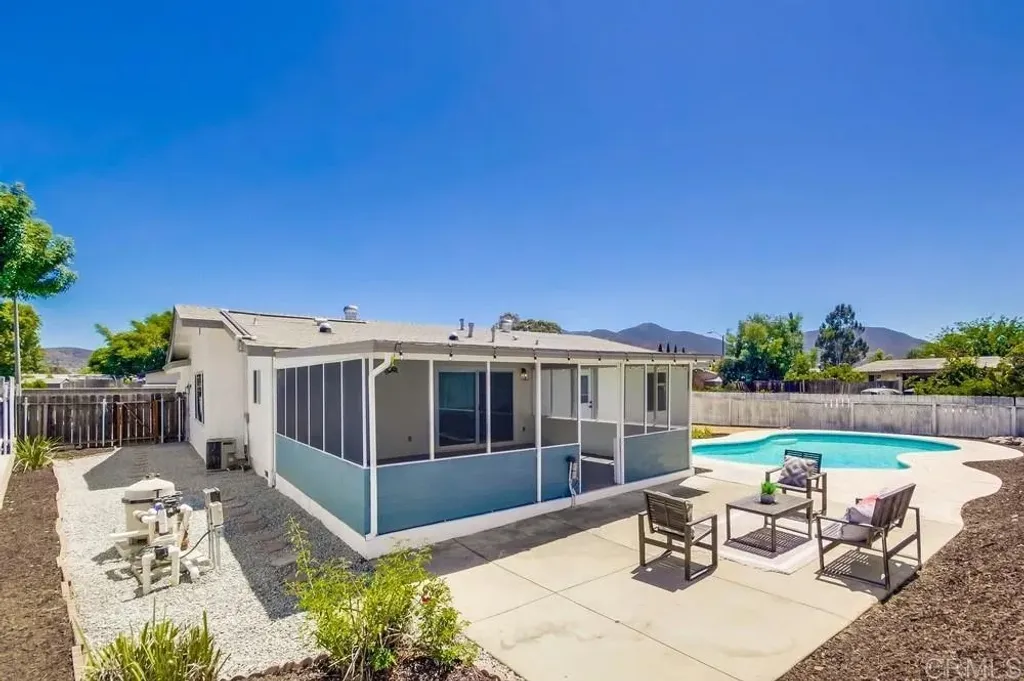 Beautifully remodeled single-story Santee home featuring 4 bedrooms, 2 spa-inspired bathrooms, and a sparkling pool with solar heat perfect for summer days. Step into the fully updated kitchen with stainless steel appliances, gorgeous cabinetry, and solar tubes that bring in abundant natural light. The open layout flows seamlessly into the dining and living areas, creating a bright, welcoming space for everyday living and entertaining. Enjoy year-round comfort with central A/C, new dual-pane windows, and a new sliding glass door. Relax in the enclosed back patio or take a swim in the private pool. The spacious backyard offers plenty of room to unwind or entertain. Additional highlights include RV parking potential, modern finishes throughout, and a prime location close to parks, schools, and shopping. Move-in ready and beautifully upgradedthis Santee stunner has it all!
