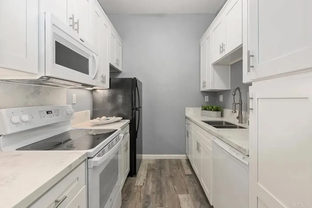 Seller will entertain offers between $459,000 and $499,000! REMODELED 1BD/1BA single level condo in the gated community of The Pines of La Jolla with a VIEW balcony. Highly desirable location in the complex - just one floor above the garage. Kitchen features newer white cabinetry, gorgeous quartz countertops, stainless steel sink and newer appliances. The bathroom was recently updated with a new vanity, custom tile and plumbing fixtures. Additional highlights include newer paint and baseboards, luxury vinyl flooring throughout and an elevator in the building allowing for easy access to the unit. The Pines of La Jolla features a pool and spa in a lovely garden setting. Excellent location within close proximity to UCSD, Doyle Park, beaches, and Westfield UTC for upscale shopping, dining and entertainment.