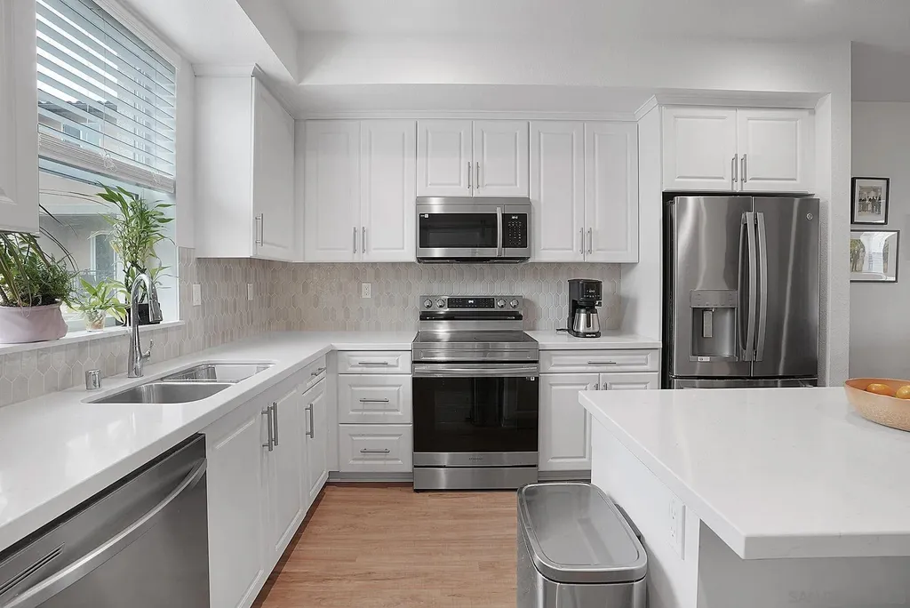 Welcome to 8381 Tahoe Street, a beautifully upgraded home in The Terraces, a new community built in 2024. This stylish tri-level townhome offers three private bedroom suites - two primary bedroom suites on the third floor with full bathrooms and expansive walk in closets and one bedroom suite on the first floor - perfect for guests, in-laws, or a home office. The open-concept second floor features a spacious living and dining area, a modern kitchen, and a convenient half bath - all enhanced by luxury vinyl flooring, recessed lighting, ceiling fans and Ecobee smart thermostats for energy efficiency and comfort. Beautiful details make this unit stand out with the kitchen's carefully chosen backsplash to the barn doors for the laundry room and office. Enjoy the convenience of a full-sized stackable washer and dryer, a two-car attached garage, and fully owned solar panels (no lease!). As a desirable back-unit location, you'll appreciate the added privacy and quiet. Ideally located just minutes from the vibrant shops and dining of downtown La Mesa, this home offers modern living right on the border of Lemon Grove and La Mesa.