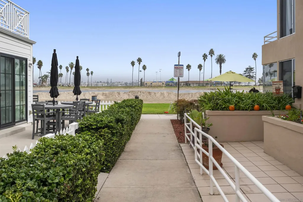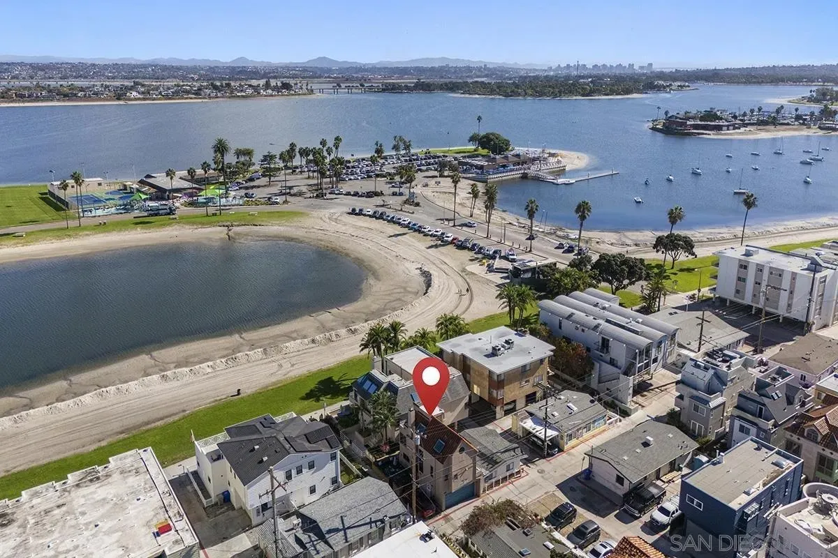 Detached approx. 20 feet from the sands with incredible Bay Views. Located by Mission Bay Yacht club. Newer multiple stories with bedroom and bath main level. Beautiful wood stairs to upper area. Large kitchen and dining room awesome living room with high Ceilings and cozy fireplace. Balcony off the primary with Bay views and dining area. Upper level is the primary bedroom with amazing bathroom with spa tub and separate shower. Perfect outdoor patio space with BBQ and plenty of sitting area and just a stone throw from the sands. Outdoor shower. New Roof, electric shades and skylights. recently tented. Currently a vacation rental and set up for future rental use. 2 car garage and one extra parking space. New photos coming.