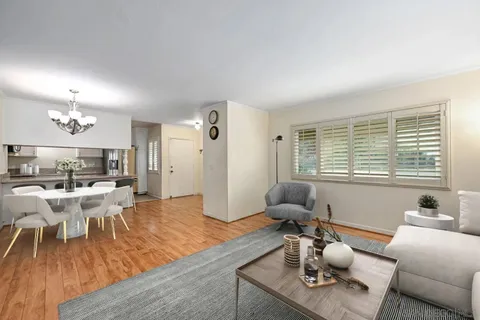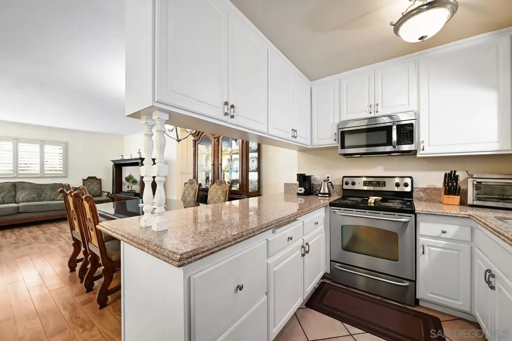 Rare end-unit single level home with no neighbors above or below! This updated residence offers modern comfort with OWNED SOLAR, SELLERS HAVE ZERO ELECTRIC BILL, dual-pane windows, durable LVP flooring, remodeled bathrooms, and a beautifully appointed kitchen featuring stainless steel appliances, crisp white cabinetry, and granite countertops. The spacious primary suite includes patio access, a walk-in closet, and a private en-suite bath. Enjoy the convenience of in-unit laundry and a private patio. Carport right behind unit, direct access into home from patio. Community amenities include a pool, and the home comes with TWO ASSIGNED PARKING SPACES - one carport and one uncovered. Ideally located in Horizon Village, just minutes from shopping, dining, and easy access to freeways 52 and 125.