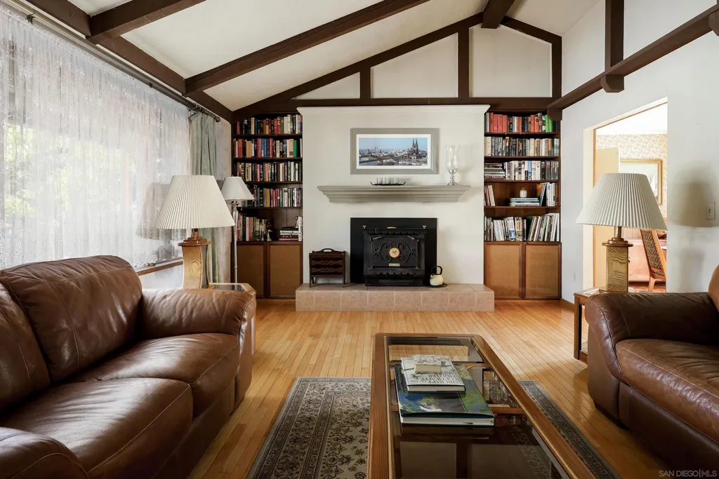 Nestled in the highly sought-after Porter Hill neighborhood, known for its custom homes and pride of ownership, this residence showcases timeless character and craftsmanship. Highlights include extensive built-ins, hardwood floors, vaulted ceilings, and trophy cases. Additional features such as a tile roof, copper piping, and finished garage walls further enhance the home's lasting quality. From the hidden den's balcony, enjoy easterly views of the iconic and historic Mt. Helix cross. SEE SUPPLEMENT BELOW. Several fruit trees complement a peaceful, low-maintenance yard. All of this is just under a mile from the charming Village of La Mesa and within walking distance to the community center, public pool, and Little League field, offering both convenience and a vibrant neighborhood lifestyle.