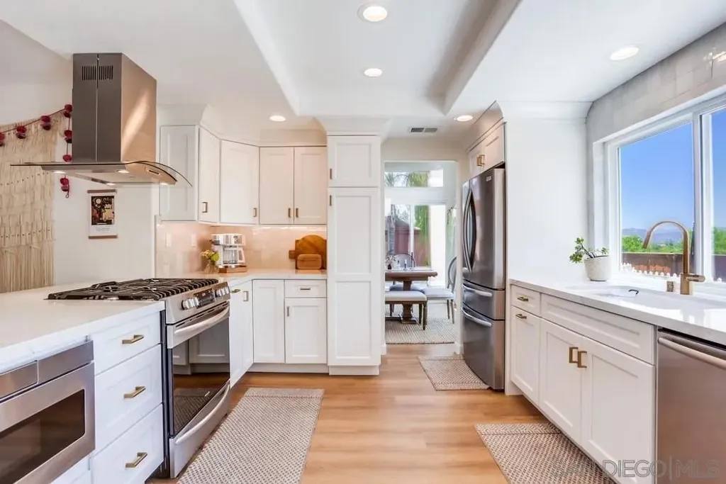 Welcome to this stunning 4 bedroom, 3 bathroom single-family home nestled in a double cul-de-sac in the highly desirable Ranch Fanita community of Santee. This spacious and thoughtfully updated home features new flooring throughout, a remodeled kitchen complete with stainless steel appliances, gas cooking, textured backsplash, and sleek finishes that will impress even the pickiest buyer. Enjoy year-round comfort with air conditioning, vinyl windows, and plantation shutters. The open-concept layout with two dining areas is perfect for entertaining. This home also features a brand new washer and dryer and solar panels, keeping energy costs down. Take in serene mountain views - a rare feature for homes on this street. Ranch Fanita offers resort-style amenities including a community pool, spa, basketball court, and scenic walking trails. Conveniently located close to everything Santee has to offer, including shopping, dining, schools, and parks. Don't miss your chance to own this move-in ready gem in one of Santee's most sought-after neighborhoods!