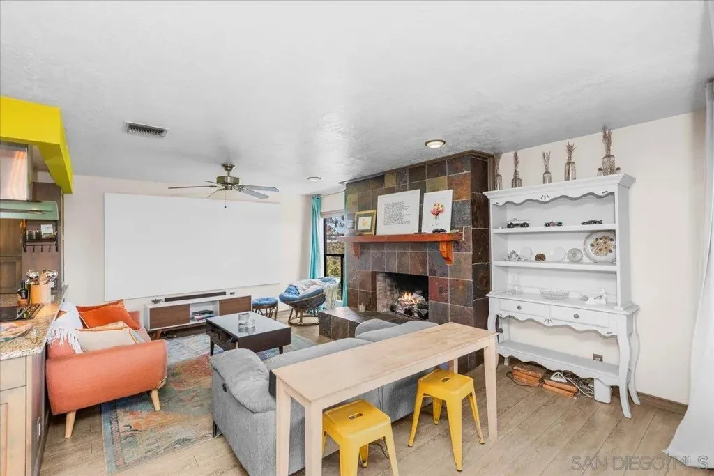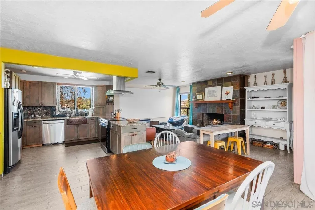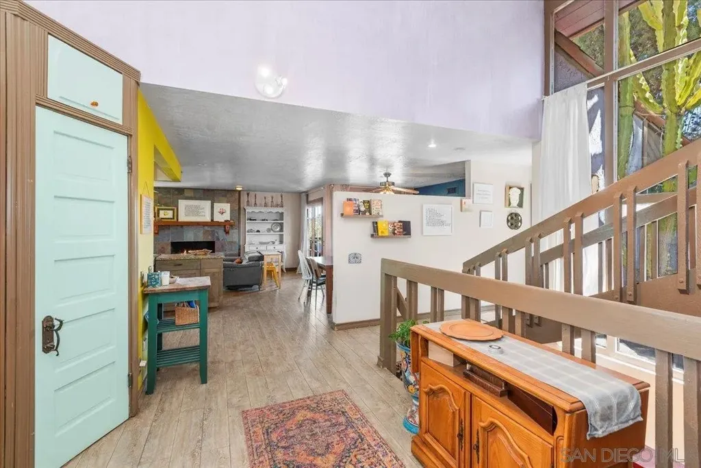 Stunning Artistic Tri-Level Home with Panoramic Views in Spring Valley Welcome to this one-of-a-kind Spring Valley residence offering spectacular views, a thoughtfully designed open floor plan, and artistic touches throughout the home and gardens. Nestled in a serene hillside neighborhood, this tri-level home blends comfort, creativity, and functionality - perfect for families, entertainers, or multigenerational living. The dramatic mosaic-tiled foyer with soaring two-story windows sets the tone for the unique artistic flair carried throughout the home. The living room boasts high ceilings, a fireplace, and access to a view-filled balcony. An adjacent flex room with balcony access can serve as an office or extra storage. 4 Bedrooms | 3 Bathrooms: Upstairs features three spacious bedrooms, including the master suite. A private downstairs bedroom with full bath opens to a secluded terrace - ideal for guests or extended family. The master suite retreat is complete with a cozy fireplace, beautifully tiled ensuite bathroom with dual sinks, a large walk-in closet, and direct garden access. Nearly every room has access to the lush gardens and patios. The wrap-around xeriscaped yard features winding pathways, peaceful nooks, and private seating areas - perfect for relaxing or entertaining. Enjoy peace of mind with a new roof, furnace, AC, and fully paid-off solar system (all installed in 2021).
