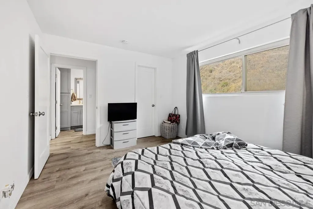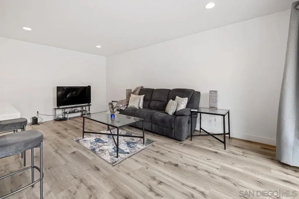 Step into this beautifully remodeled lower-level 1 bed / 1 bath condo nestled in the heart of San Carlos. With 610 square feet of thoughtfully upgraded living space, this unit features a sleek modern kitchen with quartz countertops, custom cabinetry, stainless steel appliances, and stylish gray tile backsplash. The open floor plan connects the kitchen, dining, and living areas seamlessly - perfect for relaxing or entertaining. Enjoy natural light pouring through newer dual-pane vinyl windows and a large sliding door that opens to a private, fenced-in patio - your own serene retreat just steps from lush landscaping and peaceful walking paths. The spacious bedroom includes a large walk-in closet and modern ceiling fan. The fully updated bathroom boasts contemporary finishes, new vanity, and a tiled shower with mosaic accent detail. Additional features include luxury vinyl plank flooring throughout, recessed lighting, upgraded electric panel, and an efficient split A/C unit for year-round comfort. Community amenities include a well-maintained exterior, landscaped grounds, and assigned carport parking space (#209) with extra storage. Laundry facilities are conveniently located on-site. Just a short walk to Albertsons, Aldi, 24 Hour Fitness, and public transit. Minutes to Lake Murray, Mission Trails, SDSU, Grossmont College, and major freeways (125, 52 & 8). All room dimensions and square footage are approximate and should be verified by buyer. Don't miss this move-in ready gem in a highly desirable neighborhood - perfect for first-time buyers, downsizers, or investors! The open floor plan connects the kitchen, dining, and living areas seamlessly - perfect for relaxing or entertaining. Enjoy natural light pouring through newer dual-pane vinyl windows and a large sliding door that opens to a private, fenced-in patio - your own serene retreat just steps from lush landscaping and peaceful walking paths. The spacious bedroom includes a large walk-in closet and modern ceiling fan. The fully updated bathroom boasts contemporary finishes, new vanity, and a tiled shower with mosaic accent detail. Additional features include luxury vinyl plank flooring throughout, recessed lighting, upgraded electric panel, and an efficient split A/C unit for year-round comfort. Community amenities include a well-maintained exterior, landscaped grounds, and assigned carport parking space (#209) with extra storage. Laundry facilities are conveniently located on-site. Just a short walk to Albertsons, Aldi, 24 Hour Fitness, and public transit. Minutes to Lake Murray, Mission Trails, SDSU, Grossmont College, and major freeways (125, 52 & 8). All room dimensions and square footage are approximate and should be verified by buyer. Don't miss this move-in ready gem in a highly desirable neighborhood - perfect for first-time buyers, downsizers, or investors!