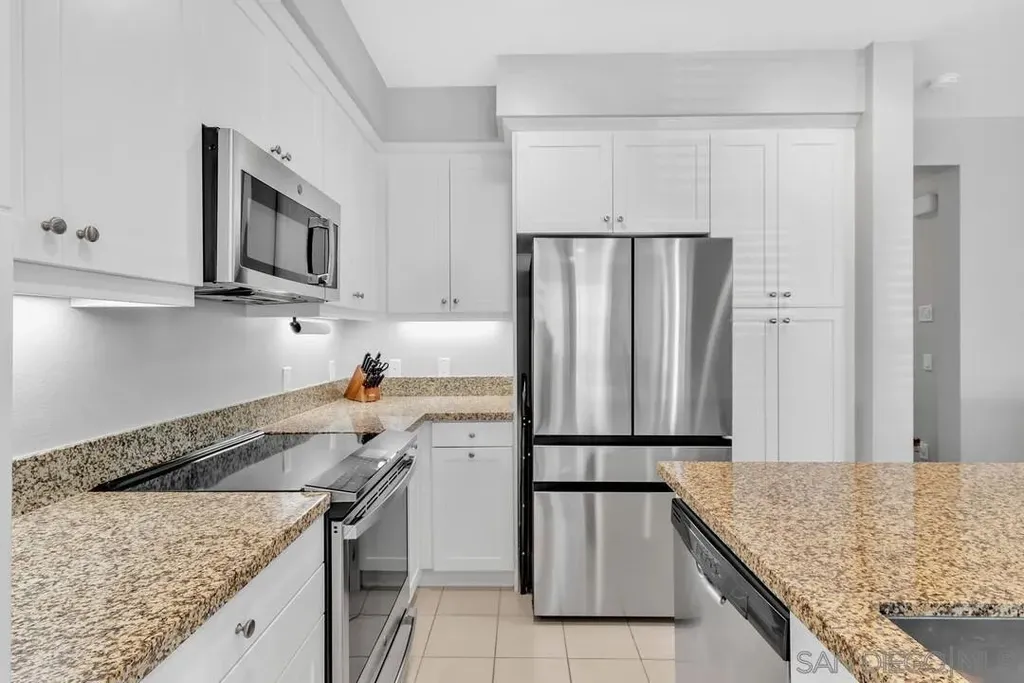 Welcome to the Ariana community. This end-unit townhome, built in 2020, has been beautifully maintained and features 3 bedrooms and 3 bathrooms, blending modern design, comfort, and eco-friendly upgrades. Enjoy an open-concept living space with brand-new LVP flooring, plush carpeted bedrooms, and plenty of natural light. The gourmet kitchen features an induction stove and under-sink alkaline water system, and connects seamlessly to the spacious dining and living areas - perfect for entertaining or relaxing at home. The primary suite offers a walk-in closet, while the first-floor bedroom, which also includes a walk-in closet, provides flexibility for guests or a home office. Step outside to your west-facing porch with beautiful mountain views, or enjoy your private front yard with turf and stamped concrete patio. This home is packed with smart and sustainable features, including 6 owned solar panels, 2 Tesla batteries, and 8 additional panels, giving you peace of mind to run your A/C freely. Additional highlights include a whole-house fan, Nest thermostat, and fiber-optic internet. The attached two-car garage offers convenient storage racks, and residents can enjoy a low monthly HOA with community amenities such as barbecue areas and corn hole. Ideally located near Mission Trails, Cowles Mountain, major shopping centers, and many restaurants - this home is a perfect fit for today's lifestyle.