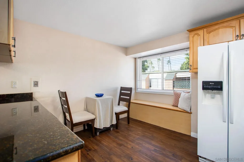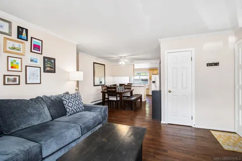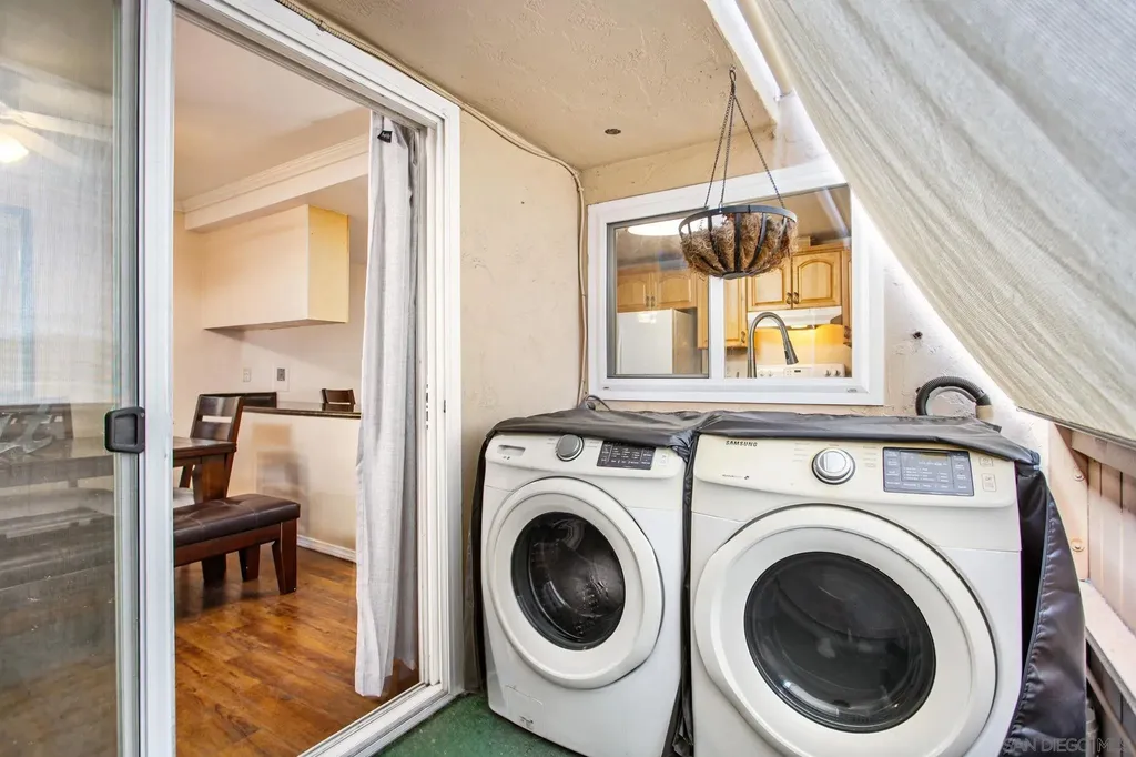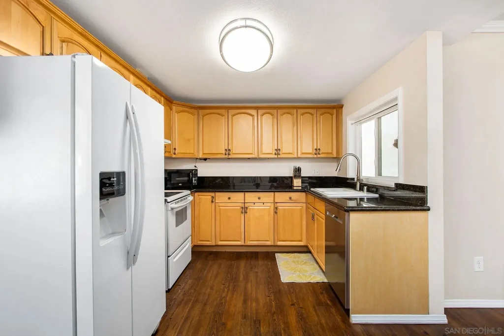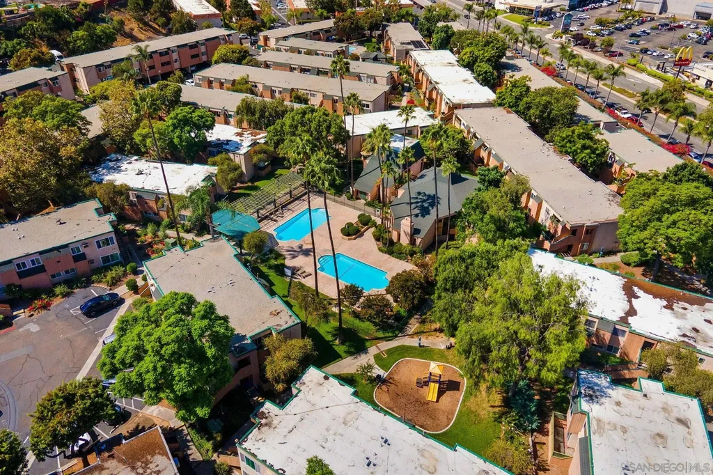 Welcome to Lake Murray Terrace in San Carlos! This top-floor corner 3 Bedrooms 2 bath unit offers an inviting open layout with granite countertops, warm honey-hued cabinetry, dual-pane windows, crown molding, and durable LVP flooring throughout. The spacious primary suite features dual closets and its own en-suite bathroom, while the convenience of a full-size laundry area on your private balcony adds everyday ease. The community provides great amenities, including a pool and tot lot, along with two assigned spaces, one under the carport. FHA and VA approved, this home is perfectly situated near shopping, dining, Grossmont College, and just minutes from Lake Murray and hiking at Cowles Mountain. Offering comfort, convenience, and location, this home is a true San Carlos gem!