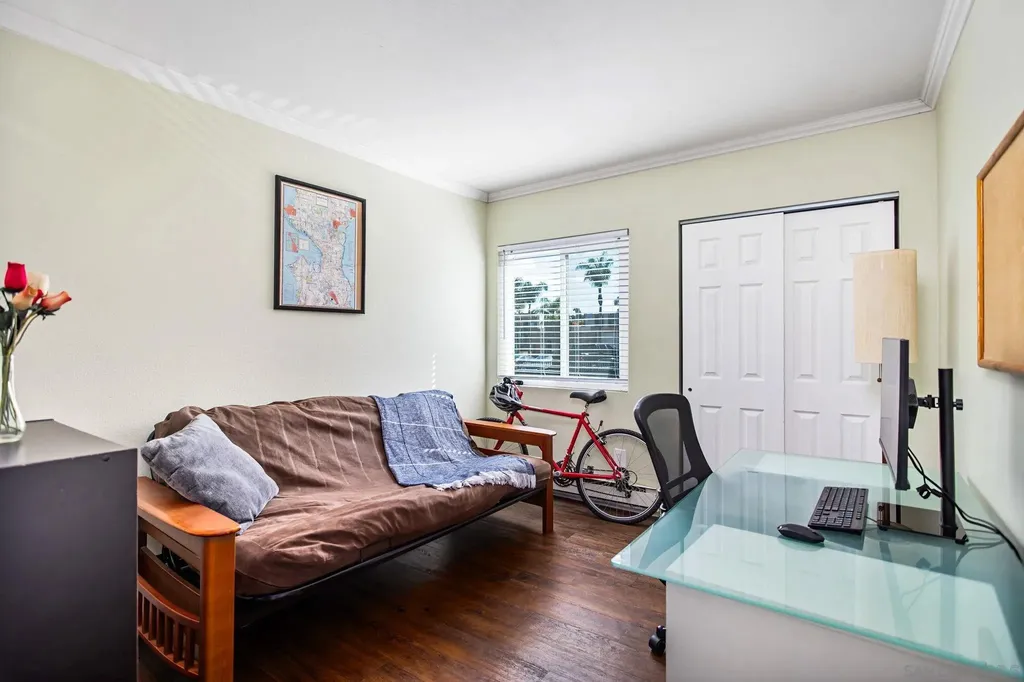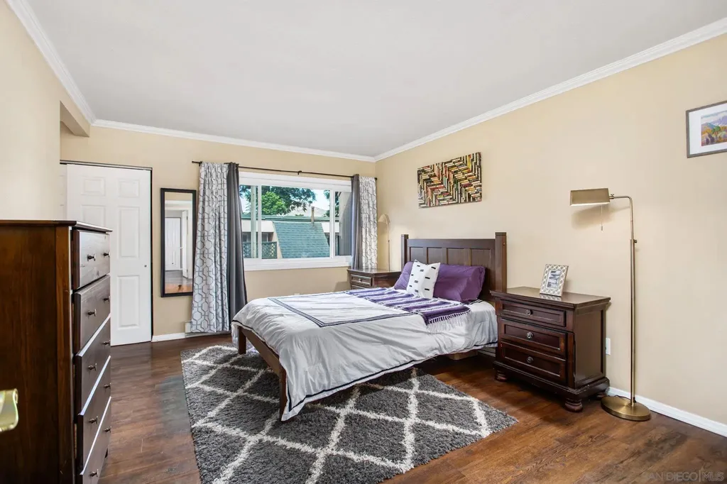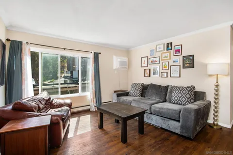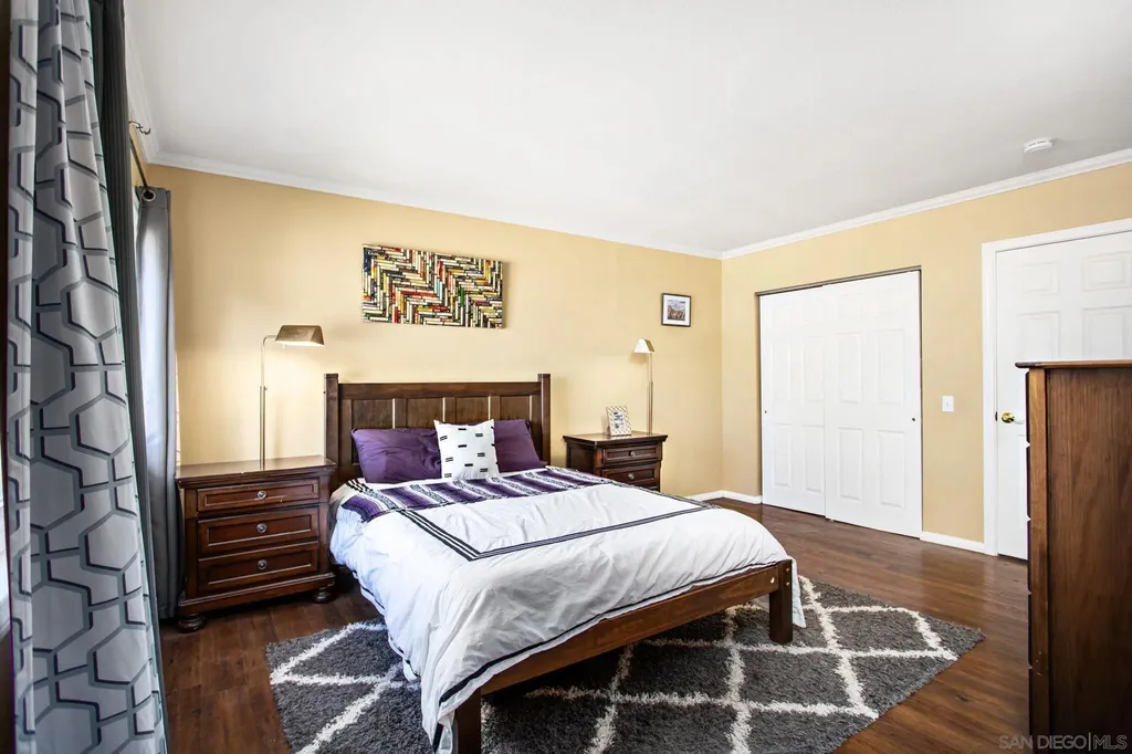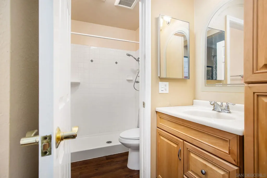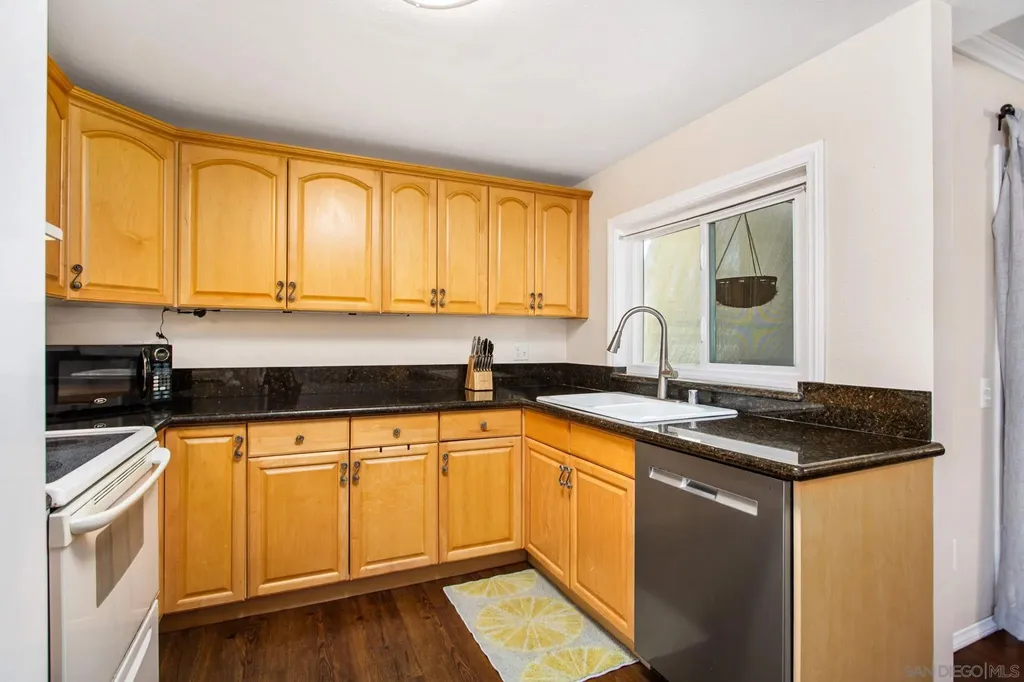 Welcome to Lake Murray Terrace in San Carlos! This top-floor corner 3 Bedrooms 2 bath unit offers an inviting open layout with granite countertops, warm honey-hued cabinetry, dual-pane windows, crown molding, and durable LVP flooring throughout. The spacious primary suite features dual closets and its own en-suite bathroom, while the convenience of a full-size laundry area on your private balcony adds everyday ease. The community provides great amenities, including a pool and tot lot, along with two assigned spaces, one under the carport. FHA and VA approved, this home is perfectly situated near shopping, dining, Grossmont College, and just minutes from Lake Murray and hiking at Cowles Mountain. Offering comfort, convenience, and location, this home is a true San Carlos gem!