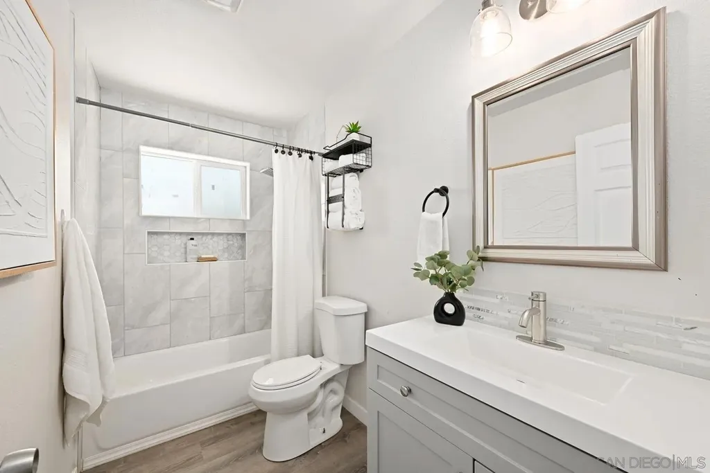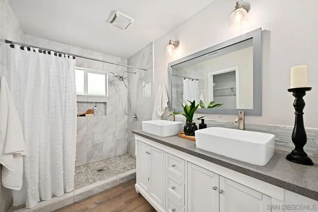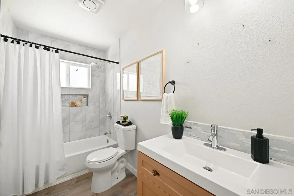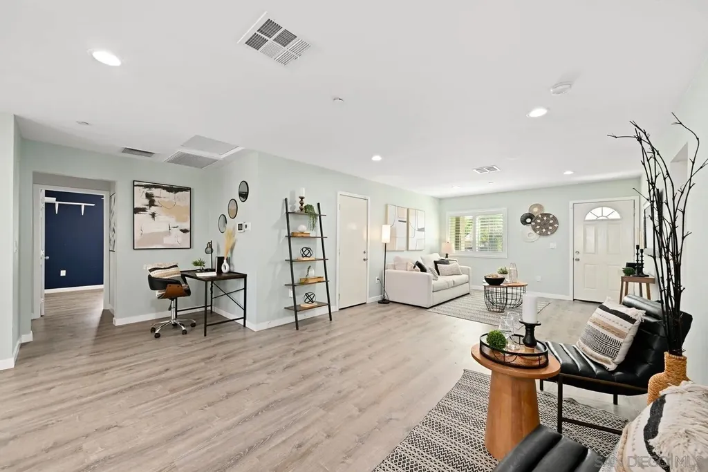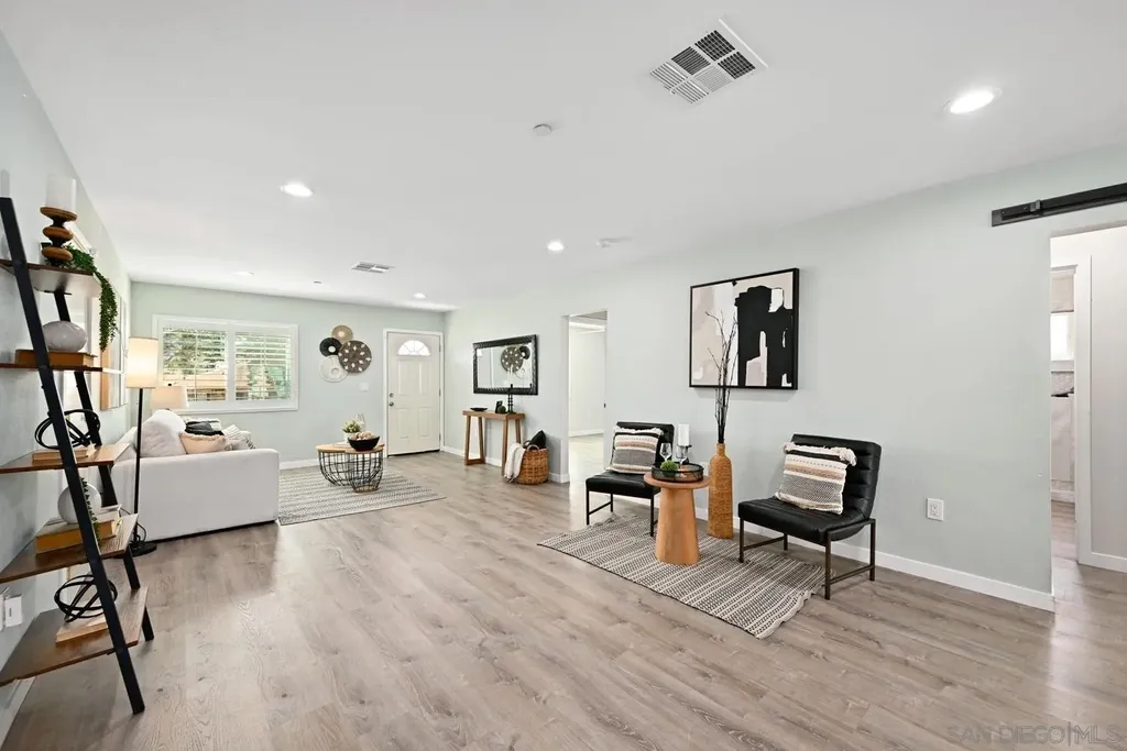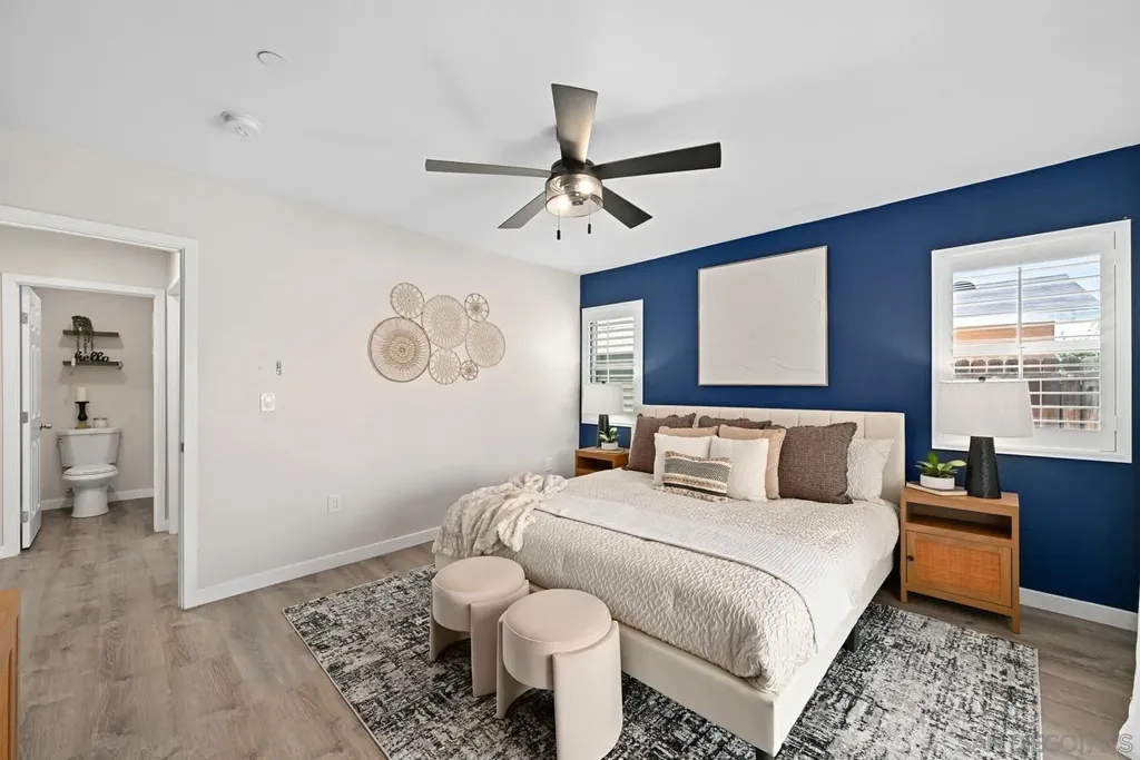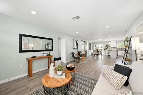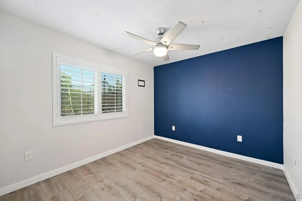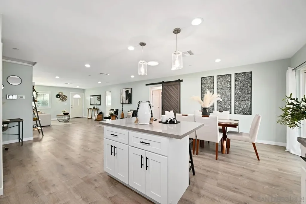 Beautiful newer construction, built in 2021, this home boasts a spacious open floor plan with wood laminate flooring throughout and elegant plantation shutters. Each bedroom is thoughtfully located in its own corner of the home, ensuring maximum privacy. Modern comforts include central heating and A/C, plus an attached 2-car garage with storage cabinets, a ceiling shelf, and electric car charging capabilities. The beautifully appointed kitchen showcases crisp white shaker-style cabinetry, a custom tile backsplash, quartz countertops, stainless steel appliances, and an island with breakfast counter seating. The spacious primary suite offers exterior patio access, ample closet space, and a private en-suite bathroom. The low-maintenance backyard features turf, stamped concrete, and a covered patio - perfect for outdoor entertaining - along with a storage shed for extra convenience. Additional highlights include RV parking and easy-care landscaping, combining functionality with style.