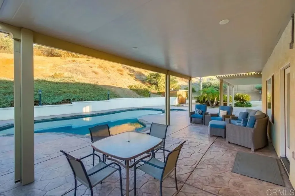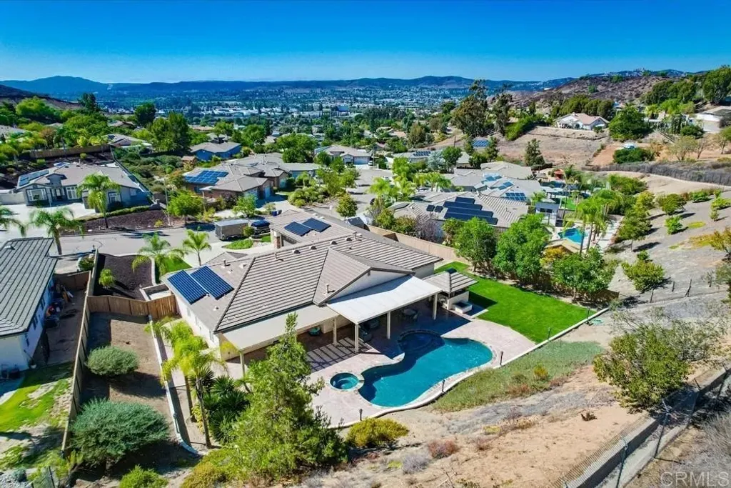 Immaculate Single-Level Home in Santee!| Over Acre | Entertainers Dream!! Welcome to this elegant and expansive single-level home in the prestigious BlackHorse Estates of Santee. Perfectly positioned on over half an acre, this immaculate property offers luxurious living, exceptional privacy, and unmatched versatilityideal for entertaining, multigenerational living, or accommodating adult children. Step inside to discover a thoughtfully designed floor plan featuring 3 spacious great rooms, 2 fireplaces, and 4 generously sized bedrooms one of which can be a private suite with its own entrance and bathroomperfect for guests, extended family, or rental potential. The gourmet kitchen is a chefs dream, boasting granite countertops, stainless steel appliances, and a large center islandall seamlessly connected to the open living and dining areas. Step outside to your own resort-style oasis: A sparkling pool with covered equipment protected by a shed structure. A built-in BBQ island and gas firepit for added evening ambiance. A solid covered patio for year-round enjoyment as well as a shaded covering to allow in some sun. A sectioned off pet area on the north side of the home for your furry family members. Open space behind the property with no rear neighborsoffering tranquility and privacy. Additional highlights include: Owned solar systemproducing credits with SDGE. Concrete tile roof for added fire protection. 2 central A/C units for zoned climate control 3-car garage plus gated RV/toy parking. Expansive driveway and lush landscaping. This is more than a homeits a lifestyle. Whether you're hosting unforgettable gatherings or seeking space for multiple generations, this rare BlackHorse gem checks every box.