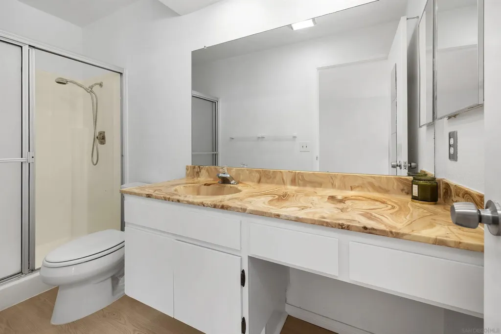 Spacious three-bedroom, two-bathroom condominium with a living area of 1,096 square feet. Conveniently located on the ground floor, this bright and airy home has been freshly repainted, offering a move-in-ready opportunity. The well-designed layout features a desirable corner unit, providing ample natural light throughout. Residents can enjoy access to the community's amenities, including multiple swimming pools, spas, and BBQ areas, as well as several spacious green spaces. The community is also very pet-friendly, quiet, and enjoyable! Woodbridge Condominium is a gem in the Serra Mesa desirable neighborhood. This thoughtfully maintained property presents an ideal living space for those seeking comfort and convenience. Woodbridge is renowned for its peaceful ambiance, welcoming neighborhood environment, and pet-friendly community. Conveniently located just minutes from Mission Valley and Fashion Valley's premier shopping, dining, and many of San Diego's popular attractions, including the brand-new Snapdragon Stadium. Quick and easy access to major freeways, including I-805, I-8, I-15, SR-163, and SR-52. Experience the ideal balance of tranquility and urban convenience in this exceptional condominium home.