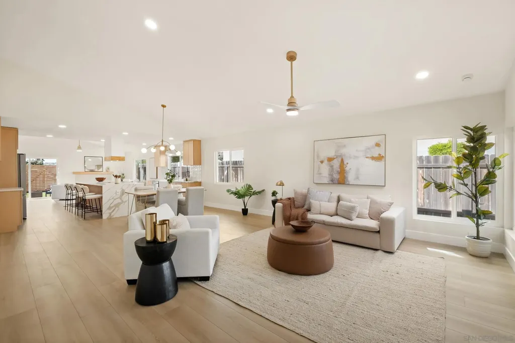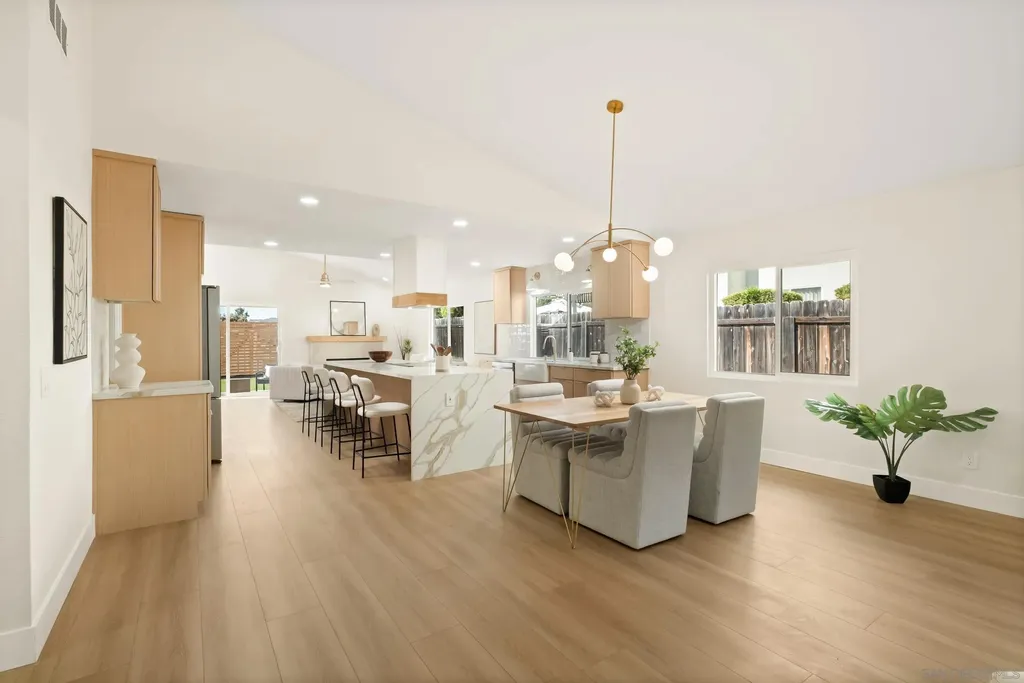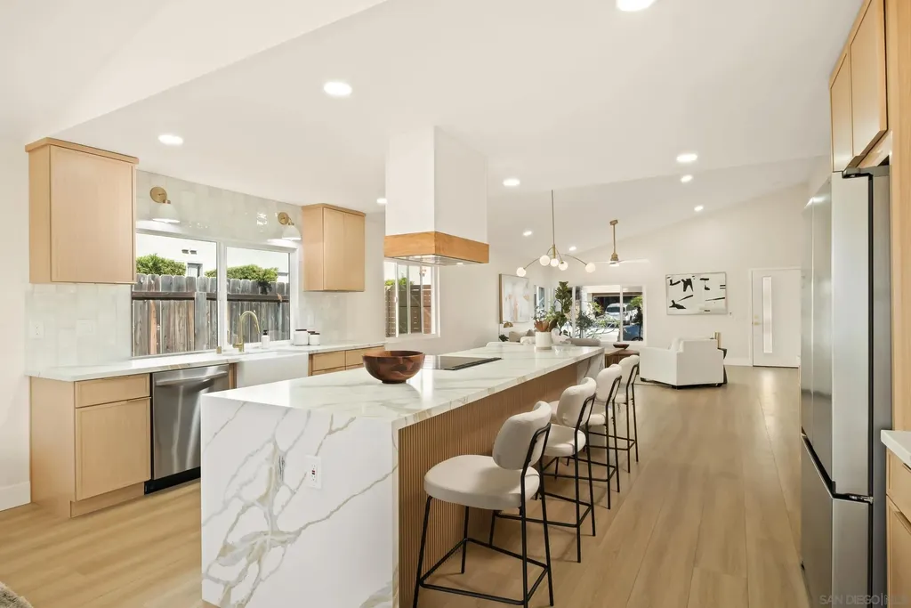 Discover this beautifully fully remodeled single-level 3 bedroom, 2 bathroom home in the heart of Rancho Pe asquitos! Thoughtfully upgraded throughout, this turn-key residence offers modern comfort, timeless style, and exceptional convenience - all within the award-winning Poway Unified School District. Step inside to an inviting open-concept layout filled with natural light. The spacious living area flows seamlessly into the brand-new kitchen, featuring quartz countertops, custom cabinetry, stainless steel appliances, and a large island perfect for entertaining. Both bathrooms have been tastefully renovated with designer finishes, including new vanities, tile work, and updated fixtures. The primary suite offers a peaceful retreat with a beautifully upgraded en-suite bath and ample closet space. New flooring throughout Recessed lighting Dual-pane windows Fresh interior & exterior paint New Furnace and Water Heater Enjoy outdoor living in the private, low-maintenance backyard - ideal for relaxing or entertaining. The home also includes a two-car garage and sits on a quiet, well-maintained street just minutes from parks, hiking trails, shopping, and dining. Don't miss this rare opportunity to own a completely remodeled, move-in ready home in one of San Diego's most desirable neighborhoods!