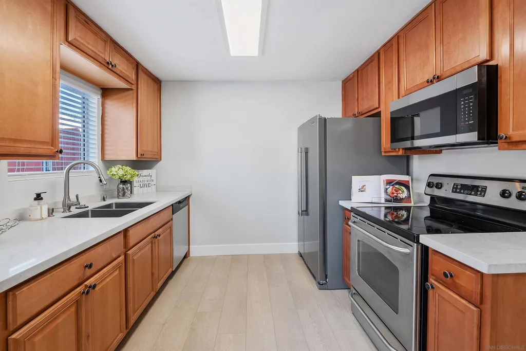 Remarkable upgraded 2-bed/2-bath ground floor condo at the Sandstone Community in Spring Valley. This lovely condo features a brand new vinyl plank flooring throughout; quartz stone slab countertops in kitchen & bathrooms; plumbing; lighting; painting; toilets; new wood fence around a large backyard and lots more. It has a central HVAC for every room and 1 exclusive covered parking space & 1 car garage. It is conveniently close to schools, shopping, parks and CA-94 Freeway access.