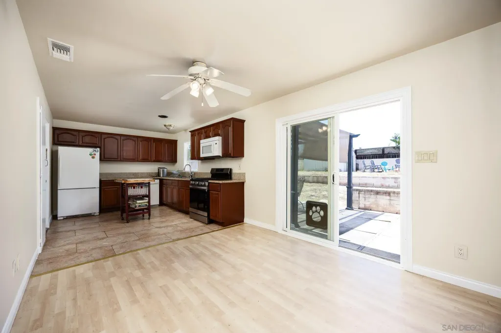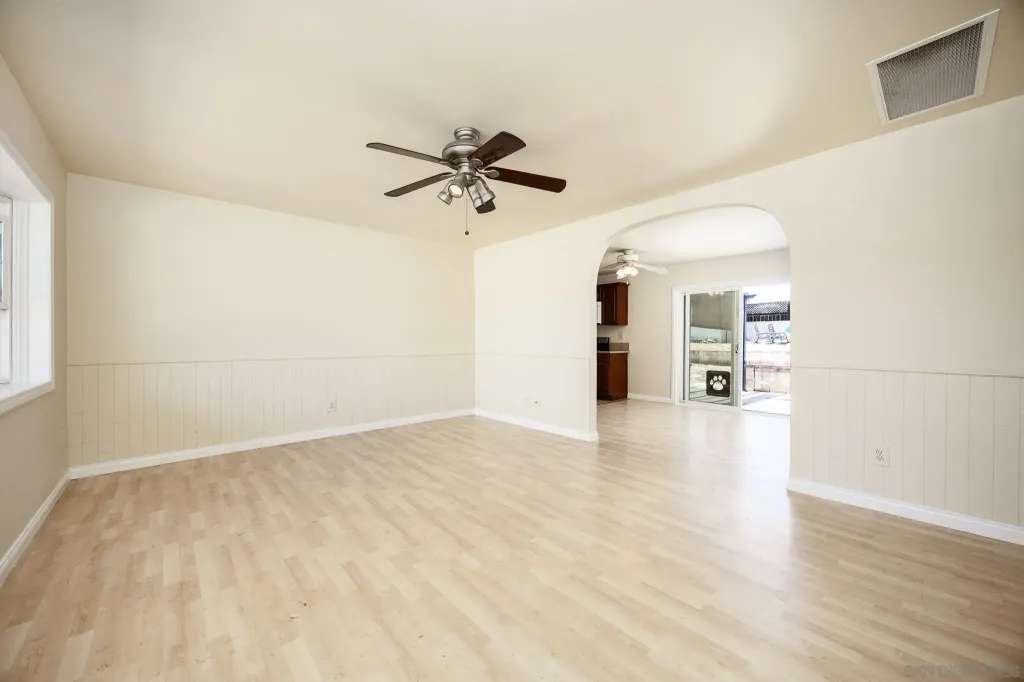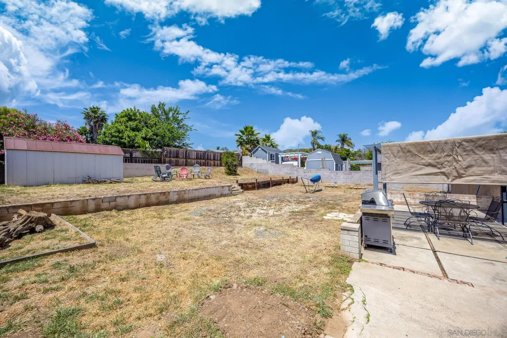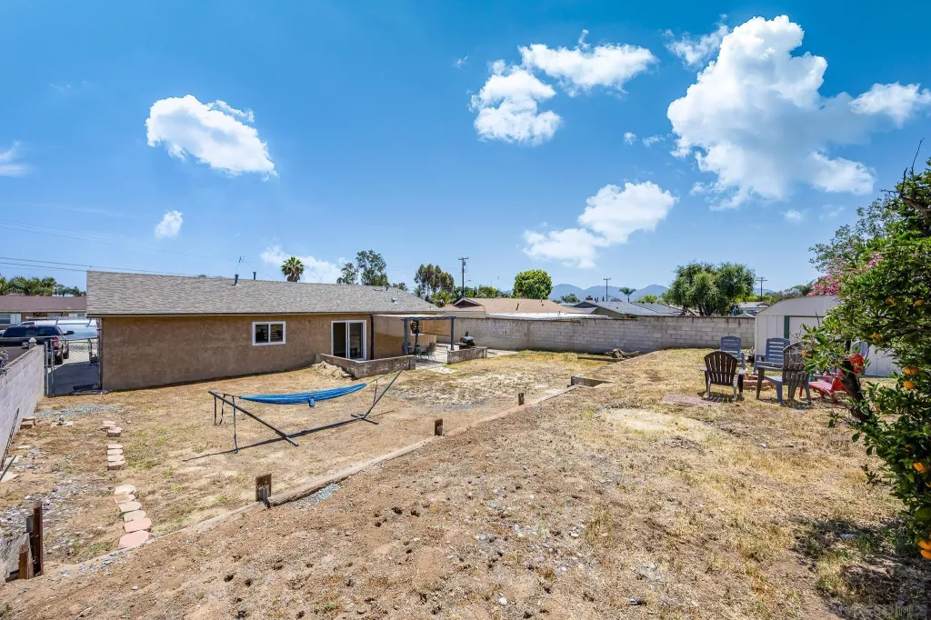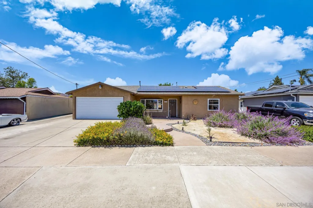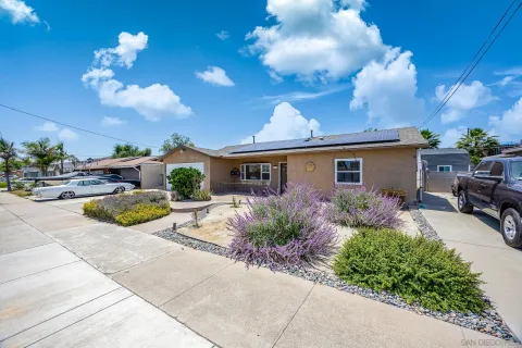 OWNED SOLAR! PLUS a whole house fan, central AC, remodeled bathroom, electric car charging station, in addition the sewer line has been relined. Do not miss all these upgrades! This is a beautifully refreshed 3 bed, 2 bath home nestled in one of Santee's most desirable neighborhoods. This single-story gem features fresh paint throughout, creating a bright and inviting atmosphere from the moment you step inside. Situated on a generous lot, the property boasts a large backyard for additional living space or rental income. Front yard has drought tollerant landscape making maintenance a breeze. Enjoy the best of outdoor living with Santee Lakes and Mast Park just minutes away, offering trails, fishing, playgrounds, movies, concerts, and more. This home combines comfort, convenience, and potential, all in a quiet, established community with easy access to schools, shopping, parks, and freeways. Don't miss your chance to own a move-in ready home with room to grow in the heart of Santee!