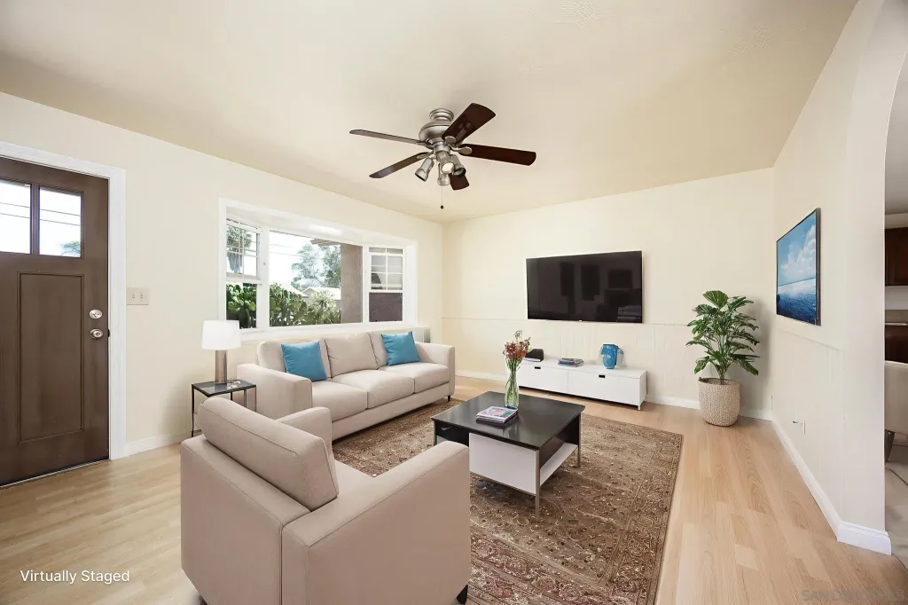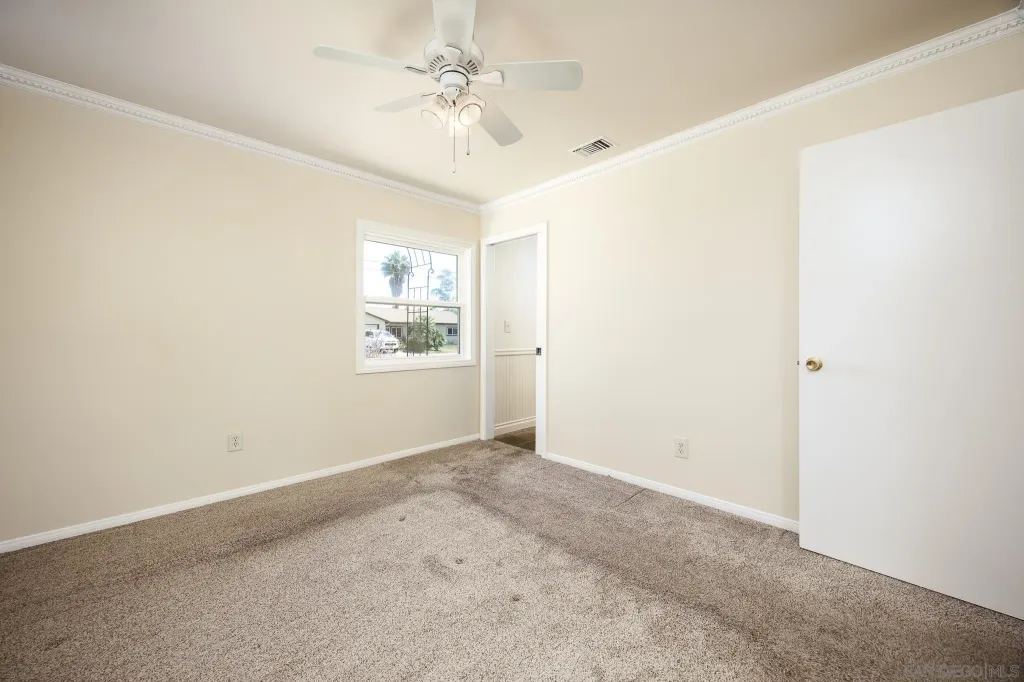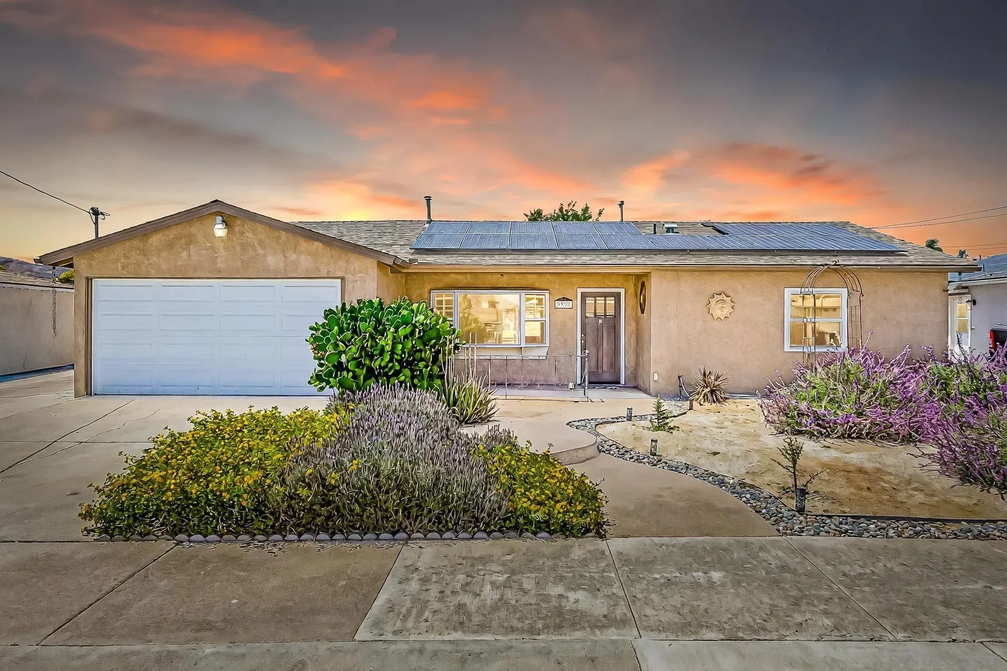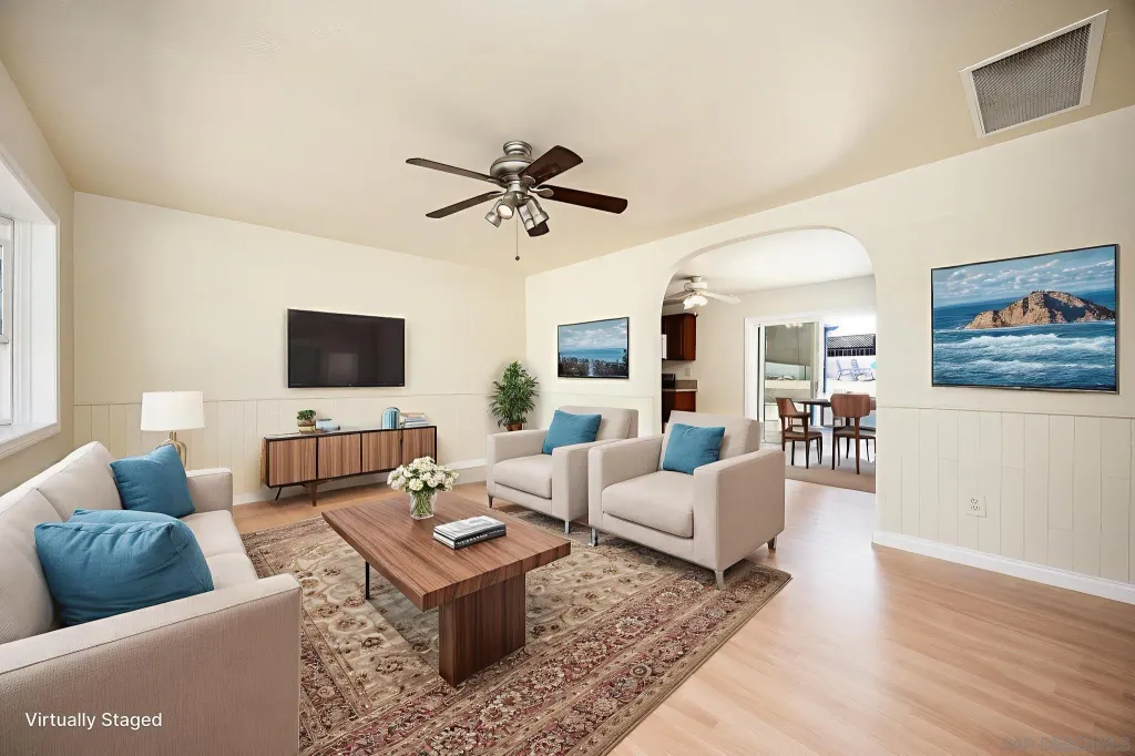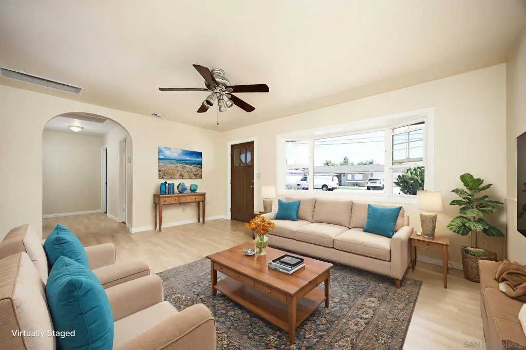 OWNED SOLAR! PLUS a whole house fan, central AC, remodeled bathroom, electric car charging station, in addition the sewer line has been relined. Do not miss all these upgrades! This is a beautifully refreshed 3 bed, 2 bath home nestled in one of Santee's most desirable neighborhoods. This single-story gem features fresh paint throughout, creating a bright and inviting atmosphere from the moment you step inside. Situated on a generous lot, the property boasts a large backyard for additional living space or rental income. Front yard has drought tollerant landscape making maintenance a breeze. Enjoy the best of outdoor living with Santee Lakes and Mast Park just minutes away, offering trails, fishing, playgrounds, movies, concerts, and more. This home combines comfort, convenience, and potential, all in a quiet, established community with easy access to schools, shopping, parks, and freeways. Don't miss your chance to own a move-in ready home with room to grow in the heart of Santee!