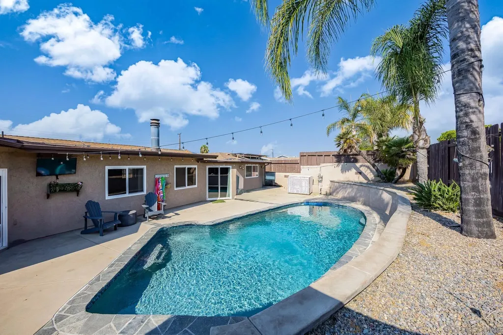 Welcome to this wonderful single-story home featuring 3 spacious bedrooms, 2 full bathrooms, and an inviting open floor plan designed for modern living. The heart of the home boasts a bright and airy living space that flows seamlessly into the dining area and kitchen. You'll love the large bonus room, making the square footage around 2000 Sq Ft. Step outside to your private backyard oasis with a sparkling pool, perfect for summer fun and year-round enjoyment. All of this and owned solar! Conveniently located near schools, Santee Lakes, Carlton Oaks Golf Course, shopping, and dining. Don't miss the opportunity to make this versatile and stylish home yours.