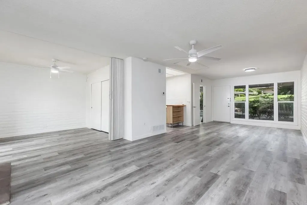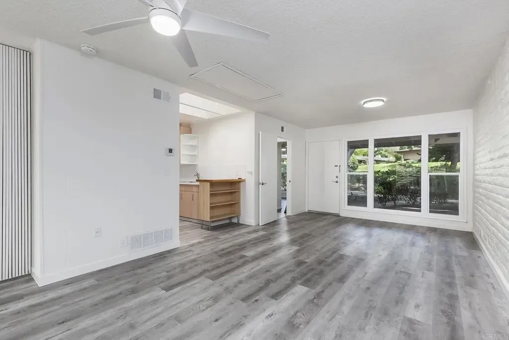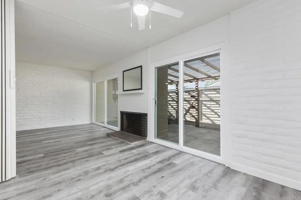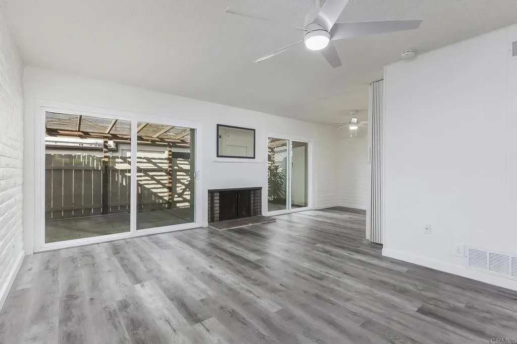 Prime La Mesa location..SO QUIET!! This 1-story immaculate villa style unit will go fast. Very few here at Grossmont Village every hit the market. Enjoy back patio BBQ's on a parklike setting on your front porch. Brand new windows and patio sliding doors, freshly painted, new ceiling fans and lighting, LVP flooring, custom bathroom with walk-in shower, fireplace and more. Covered parking directly behind unit and association allows permits for additional parking. HOA covers pools,water, trash, common area and insurance.
